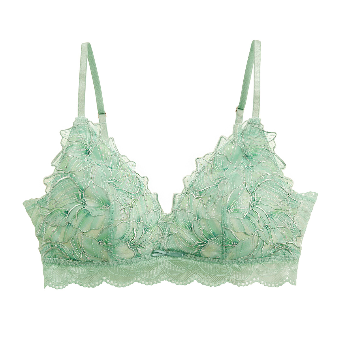 くっきりしたスカラップと、シルエットで描いたバラのチュールレース。個性的なディテールを深みのある新鮮なカラーで表現したシリーズです。