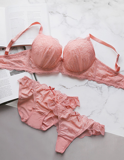 レーシィ編み上げ谷間ブラ&ショーツ