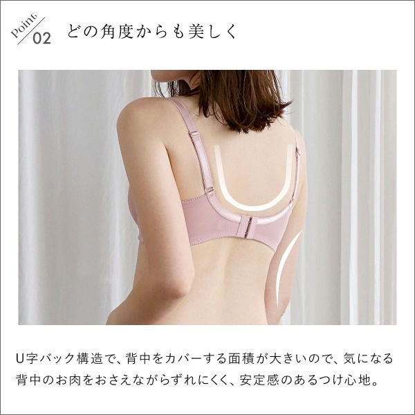 バストのはみ出しや脇流れが気になる方へ、広範囲でバストをしっかり包みこむフルカップブラが最適