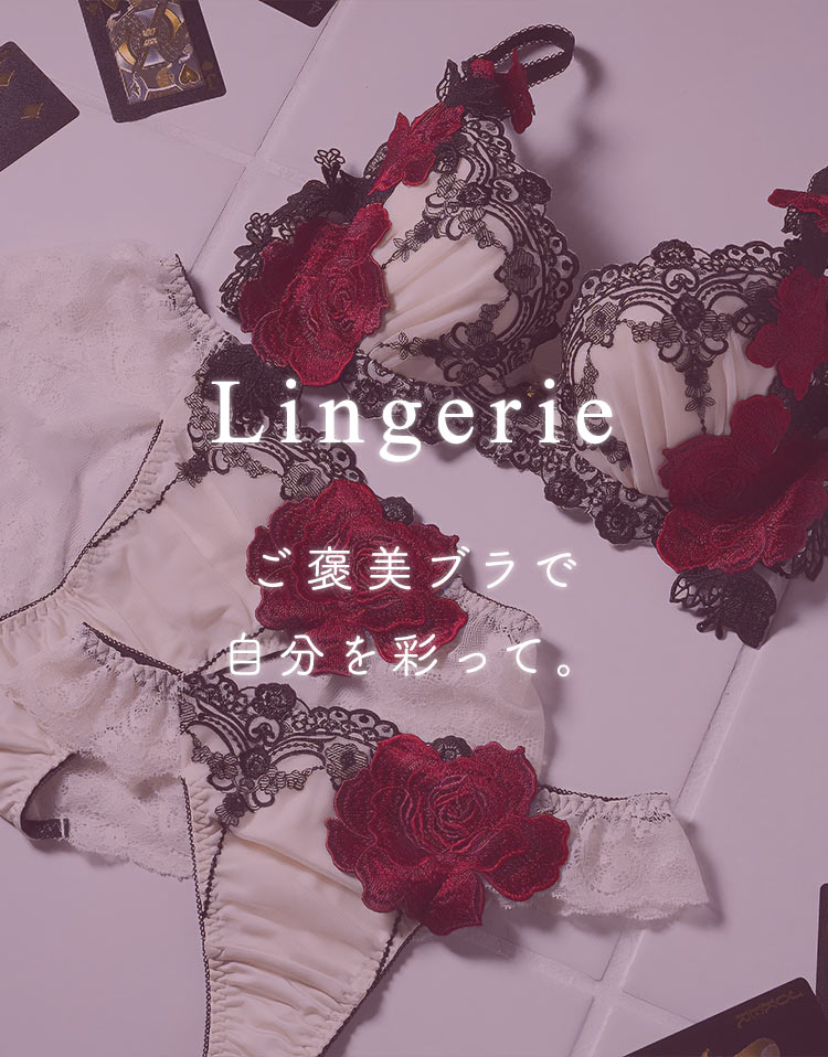 繊細でクラシカルなアーチ刺繍に大輪のバラのアップリケを飾った、ドラマチックなデザイン。カラーによって雰囲気が変わるルージュのような煌めきと、こっくり深みのある大人のコレクション。