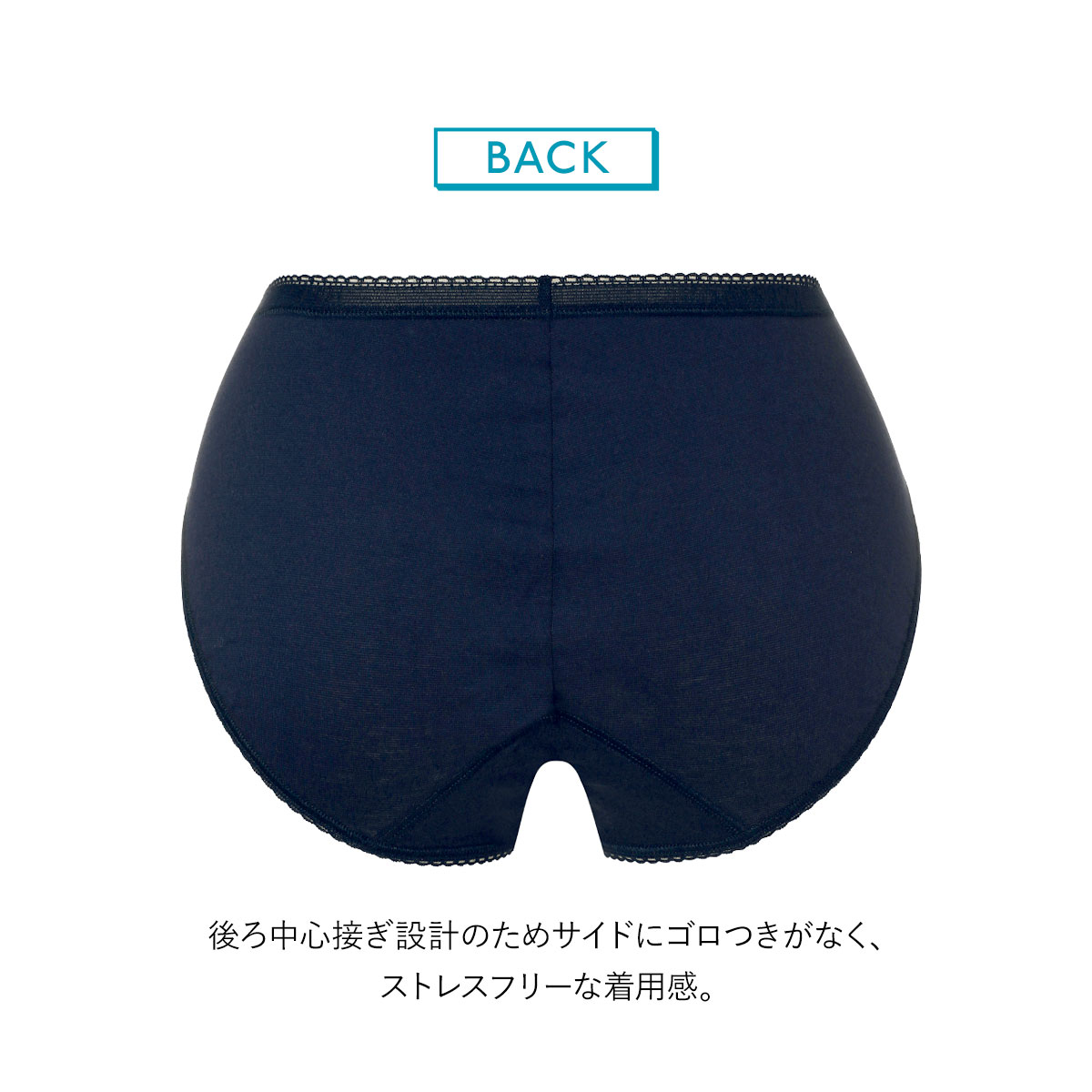 後ろ中心接ぎ設計のため脇にゴロつきがなく、ストレスフリーな着用感。ヒップラインに沿った立体裁断でフィット感も良いです。