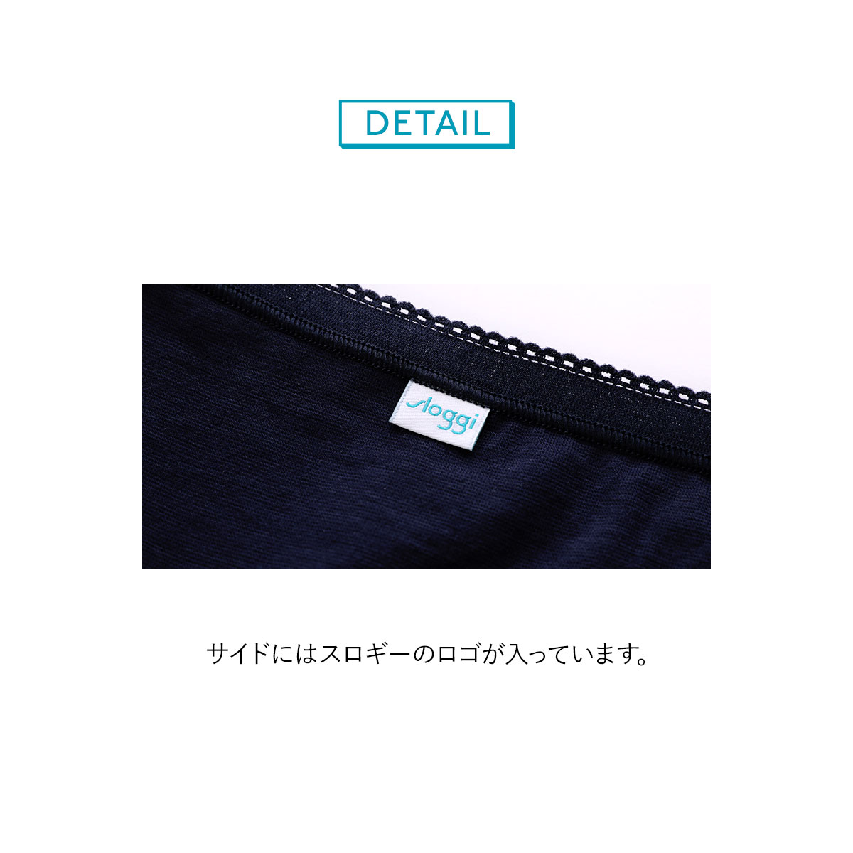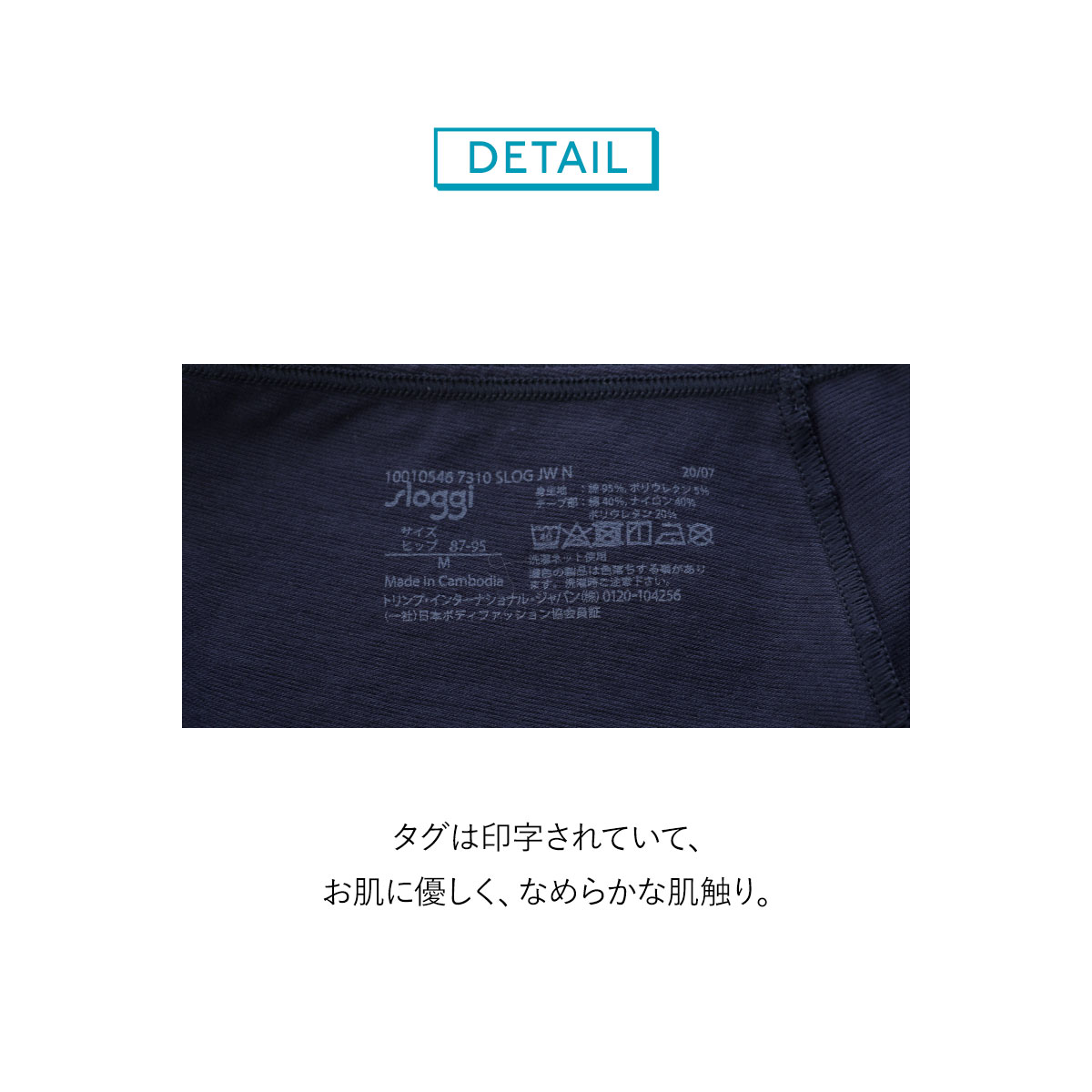 綿95%で肌触りもやさしいです。ウエスト・脚口は綿混テープを使用しています。