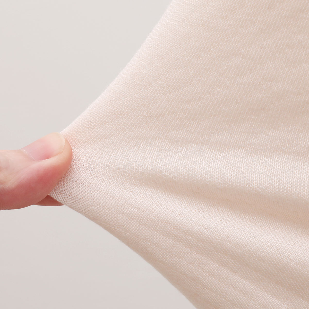 身生地には、日本酒の製造工程で出てくる酒かすを使用した酒エキス加工を施しています。酒エキス加工により、保湿性と吸湿発熱があります。