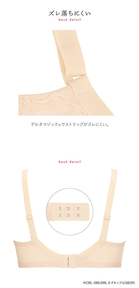 仕 様・ホックの数:2段3列(※C95、D90.D95、E-Fカップは3段3列)