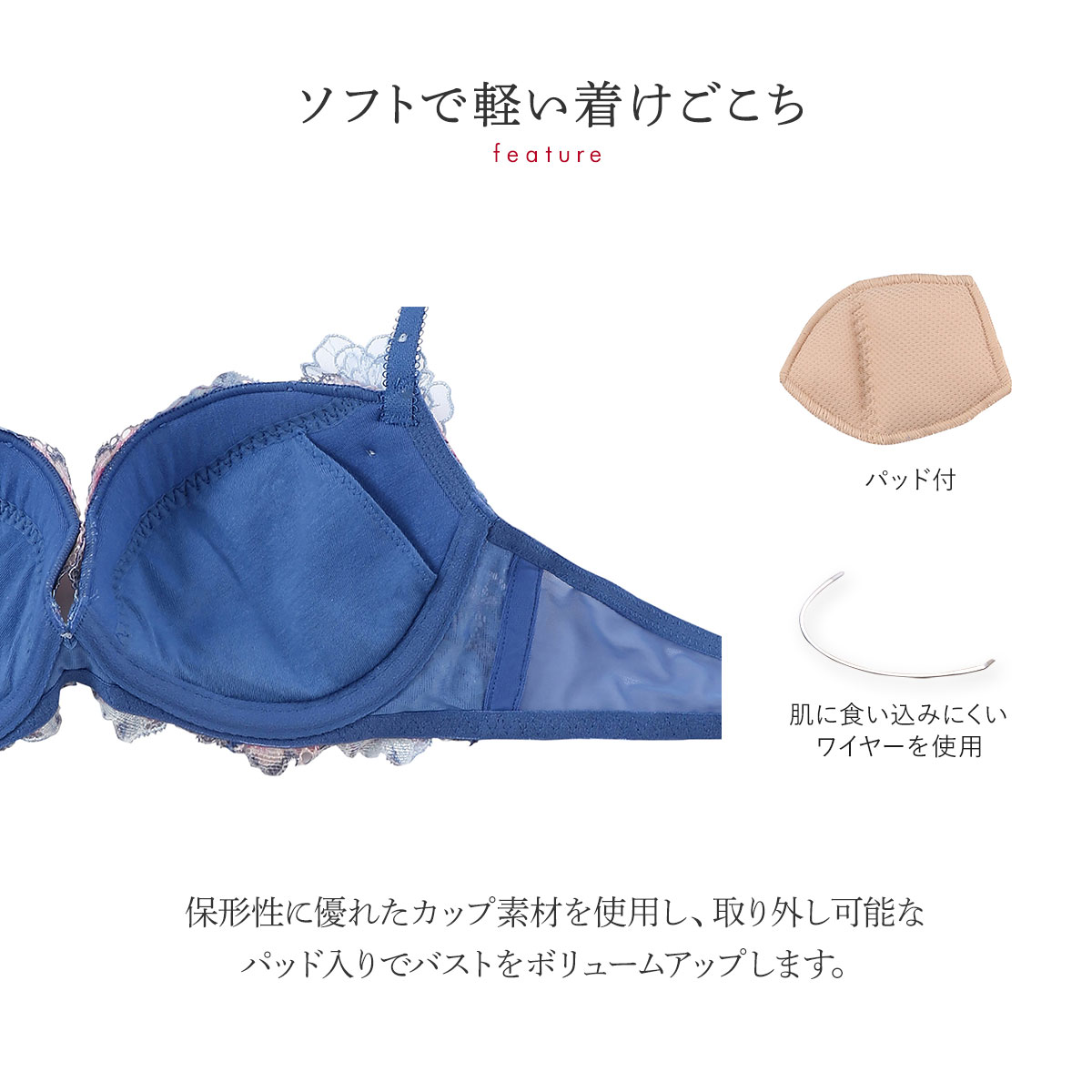 保形性に優れたカップ素材エンジェルクッション(R)ライトを使用。ソフトで軽い着けごこちでありながら、きれいなバストラインをメイクします。取り外し可能なパッド入りでバストをボリュームアップします。