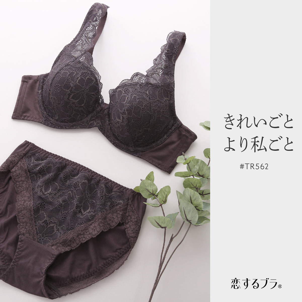 恋するブラTR562 は「ソフトな風合い」をポイントに、糸使いや伸び感、柄表現など、細部にこだわった落下版ストレッチラッセルレースを使用しています。光沢糸とマット糸を組合せて立体感を出した蘭のモチーフが、華やかながらも優しい雰囲気です。