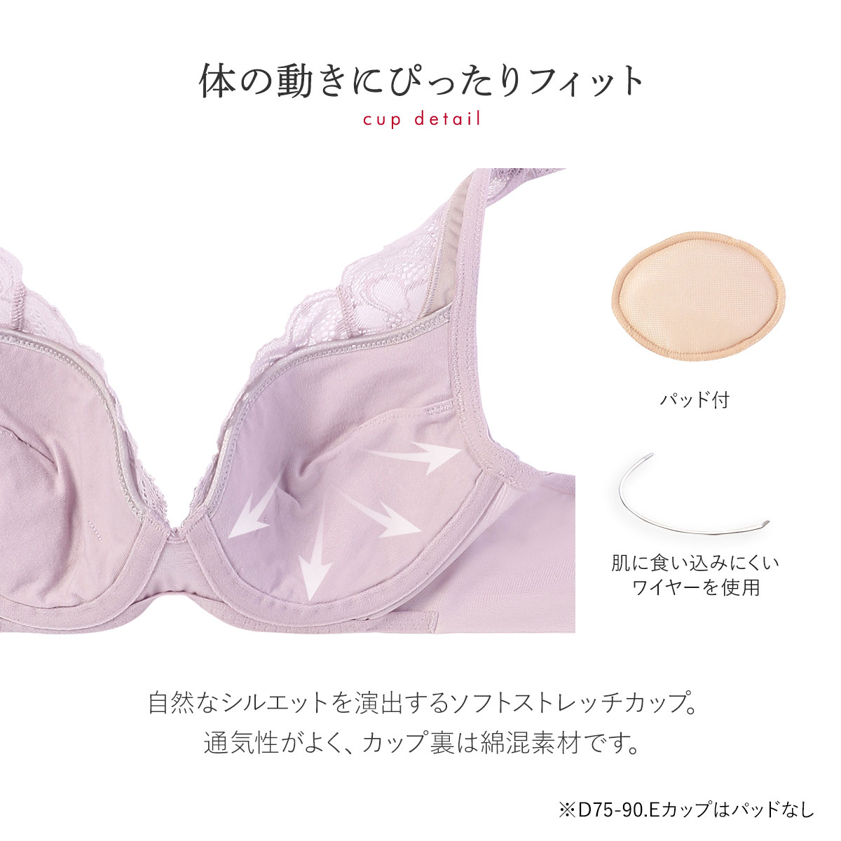 | サイズ | レディース D65、D70、D75、D80、D85、D90、E65、E70、E75、E80 |