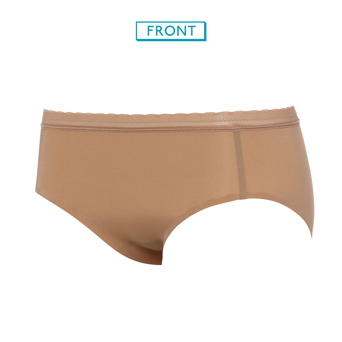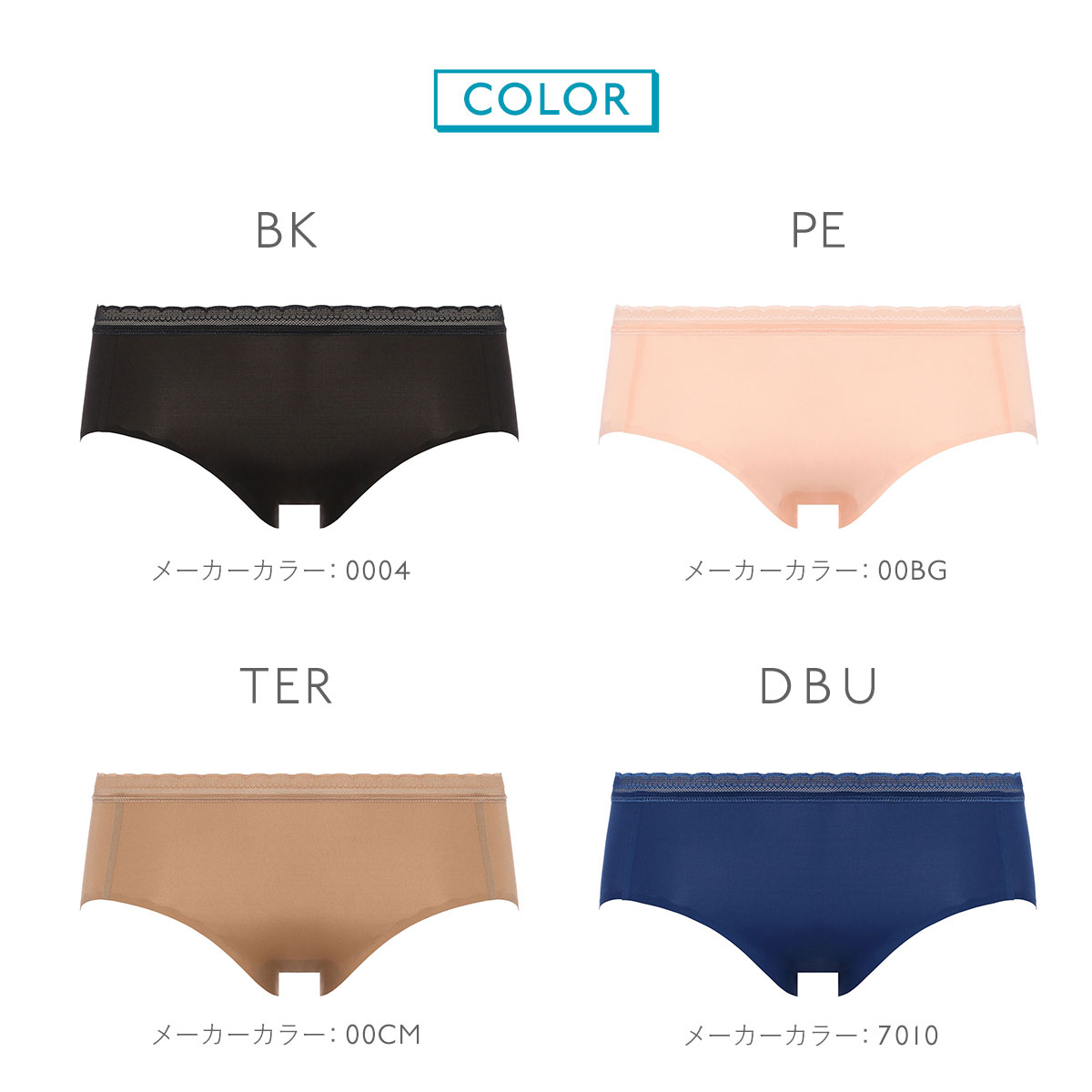 シリーズの機能性はそのままに、レースをあしらったフェミニンなデザインのショーツです。しっかり伸びてよく戻る身生地は、箇所によって伸びが変化するグラデーションフィット。