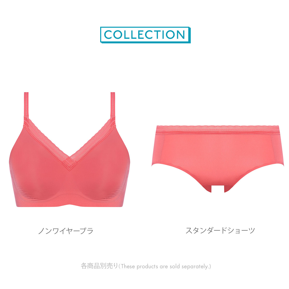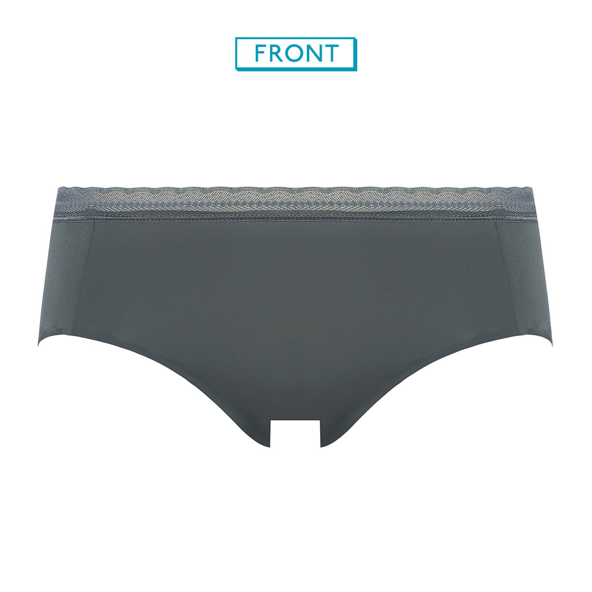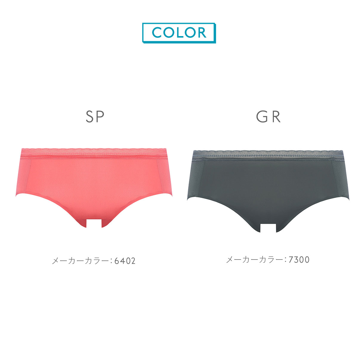 シリーズの機能性はそのままに、レースをあしらったフェミニンなデザインのショーツです。しっかり伸びてよく戻る身生地は、箇所によって伸びが変化するグラデーションフィット。