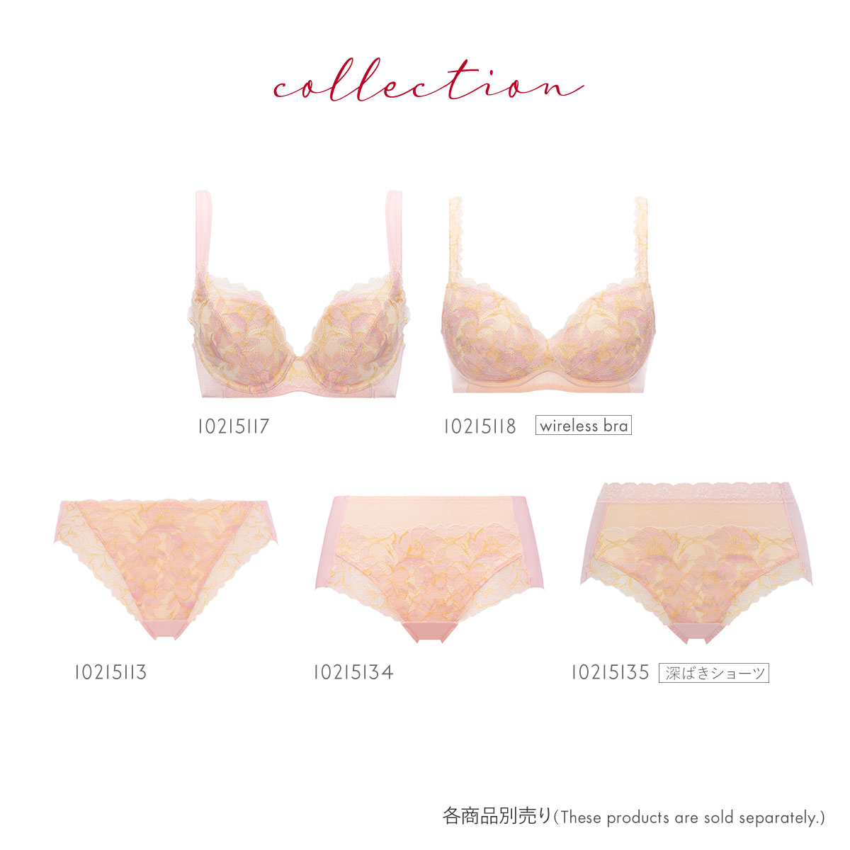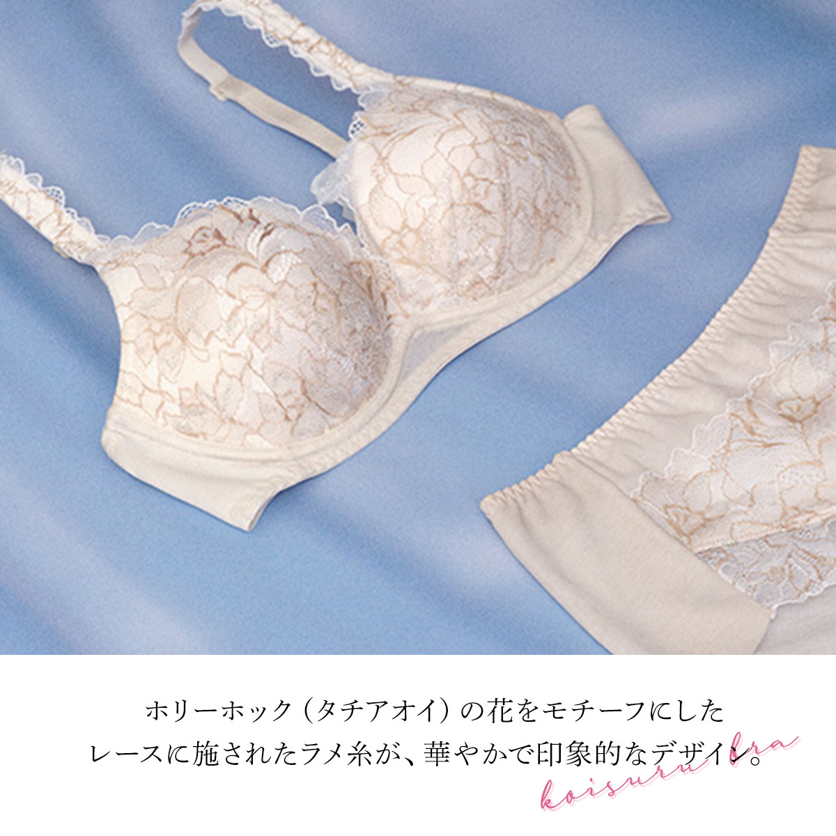 ホリーホック(タチアオイ)の花をモチーフにしたレースに施されたラメ糸が、華やかで印象的な恋するブラTR573シリーズ。深めのVネックラインのを演出するレース使いが上品なデザインです。