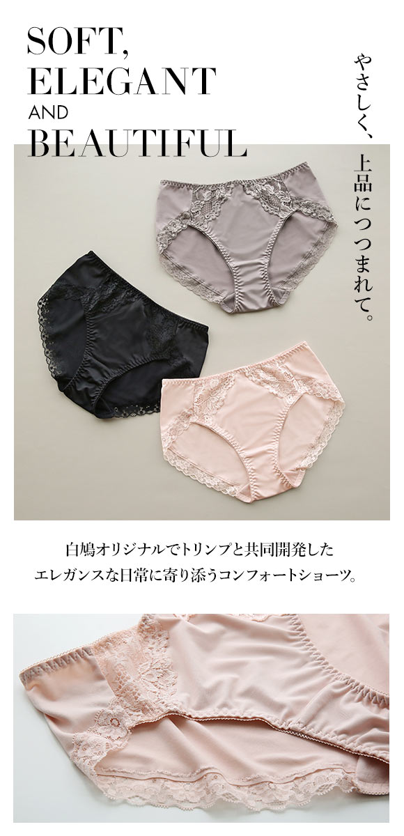 はきこみ丈は通常のショーツよりもやや深め、バックは伸縮性のよい身生地を仕様しストレスフリーな着用感です。