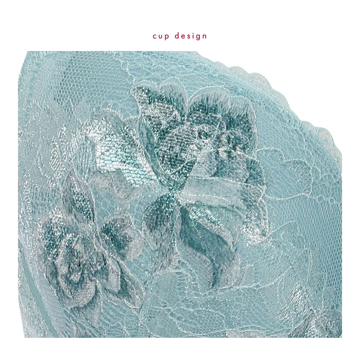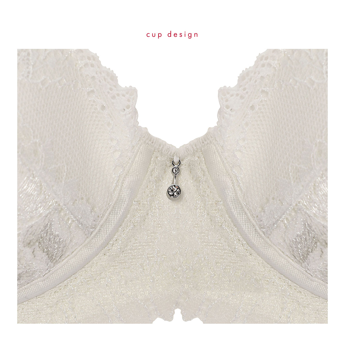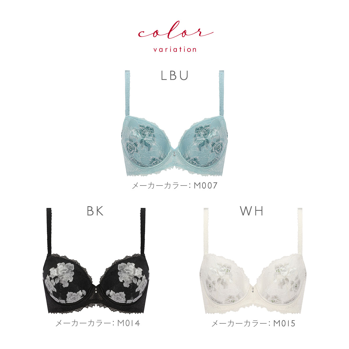 フロント中心部分のワイヤーを薄くフラットにし、さらに外側に反らせた「NEWエンジェルワイヤー」を使用しているので、肌にくいこみにくく、痛くなりにくくなっています。ストラップのとめ具には三角形の特殊な形をした、"デルタマジック"を使用しているので、肩からずれ落ちにくくなっています。