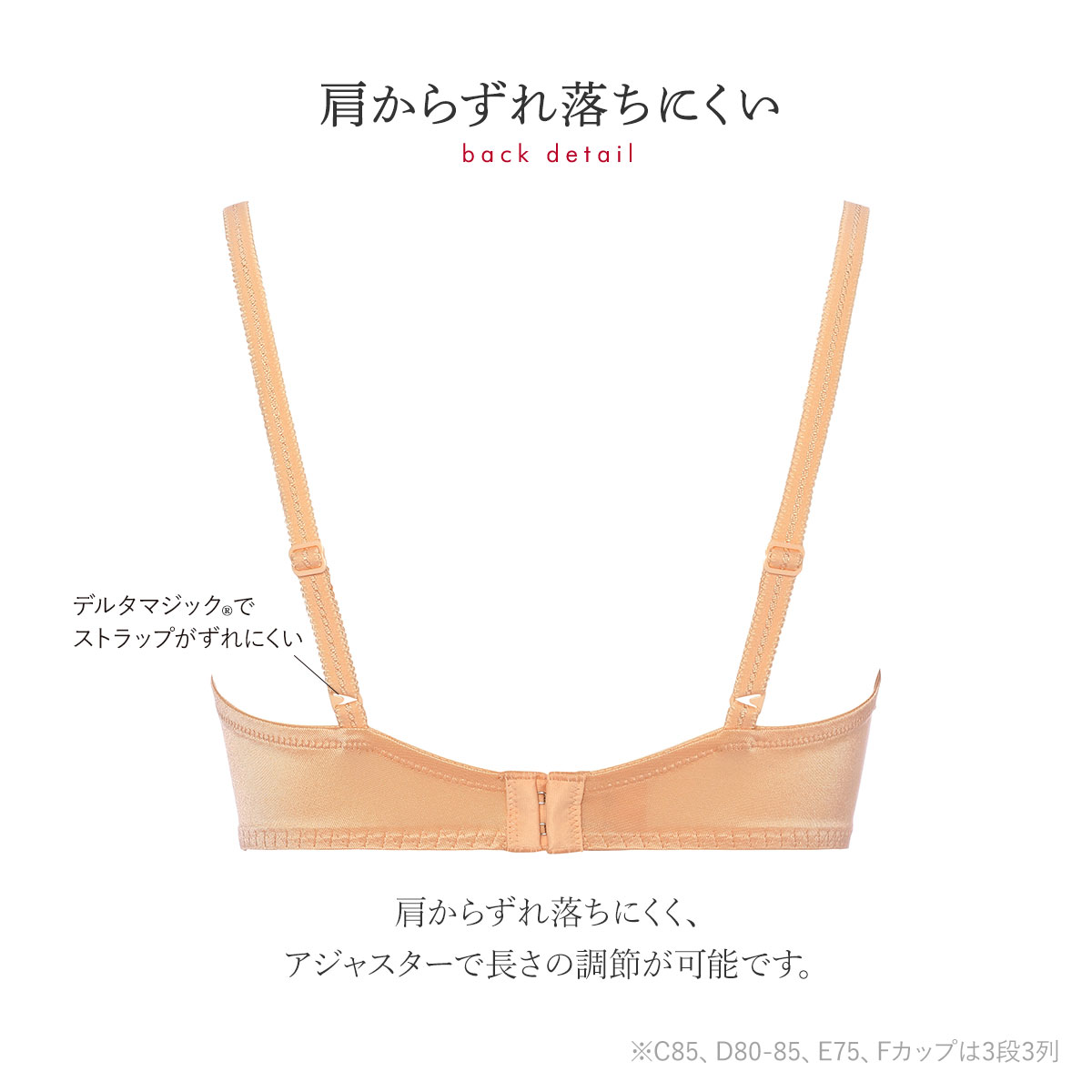 | 仕 様 | ・ホックの数:2段3列:B65-C80 3段3列:C85 ・3/4カップ ・パッド取外し:可能 ・肩紐取外し:不可 ・ワイヤー入り ・脇サイドボーン:あり |