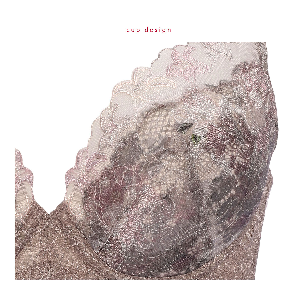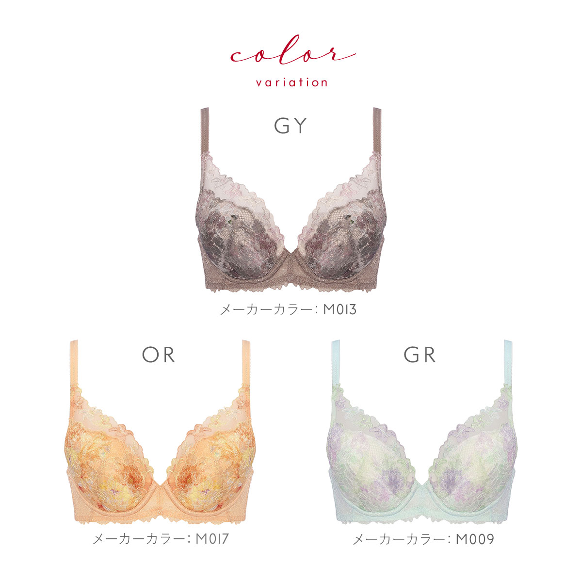 モダンアート風にくずしたヴィクトリアン調の花柄で、スペシャルな日のときめきを表現したレッドレーベル バイ トリンプTR0101シリーズ。繊細なプリントカラーに合わせた胸元の刺繍レースは、より女性の体にフィットするようにストレッチメッシュを使用しています。