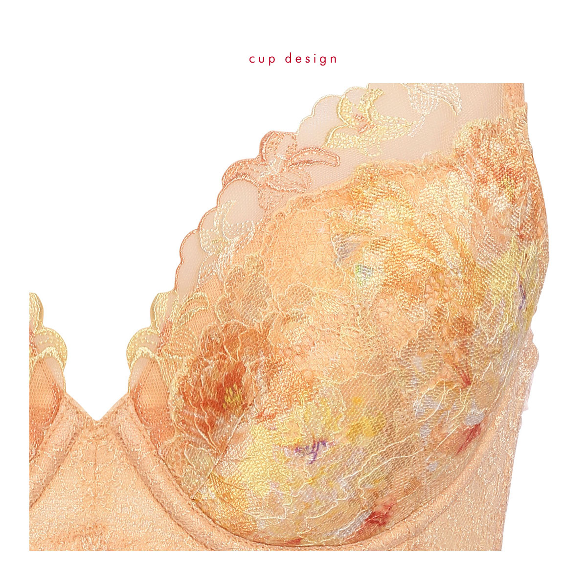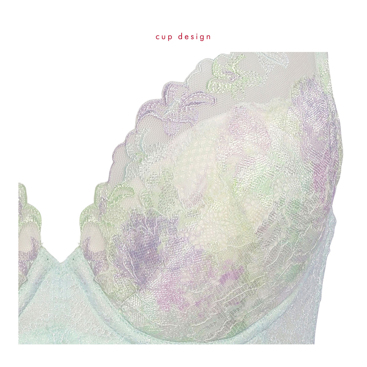 モダンアート風にくずしたヴィクトリアン調の花柄で、スペシャルな日のときめきを表現したレッドレーベル バイ トリンプTR0101シリーズ。繊細なプリントカラーに合わせた胸元の刺繍レースは、より女性の体にフィットするようにストレッチメッシュを使用しています。