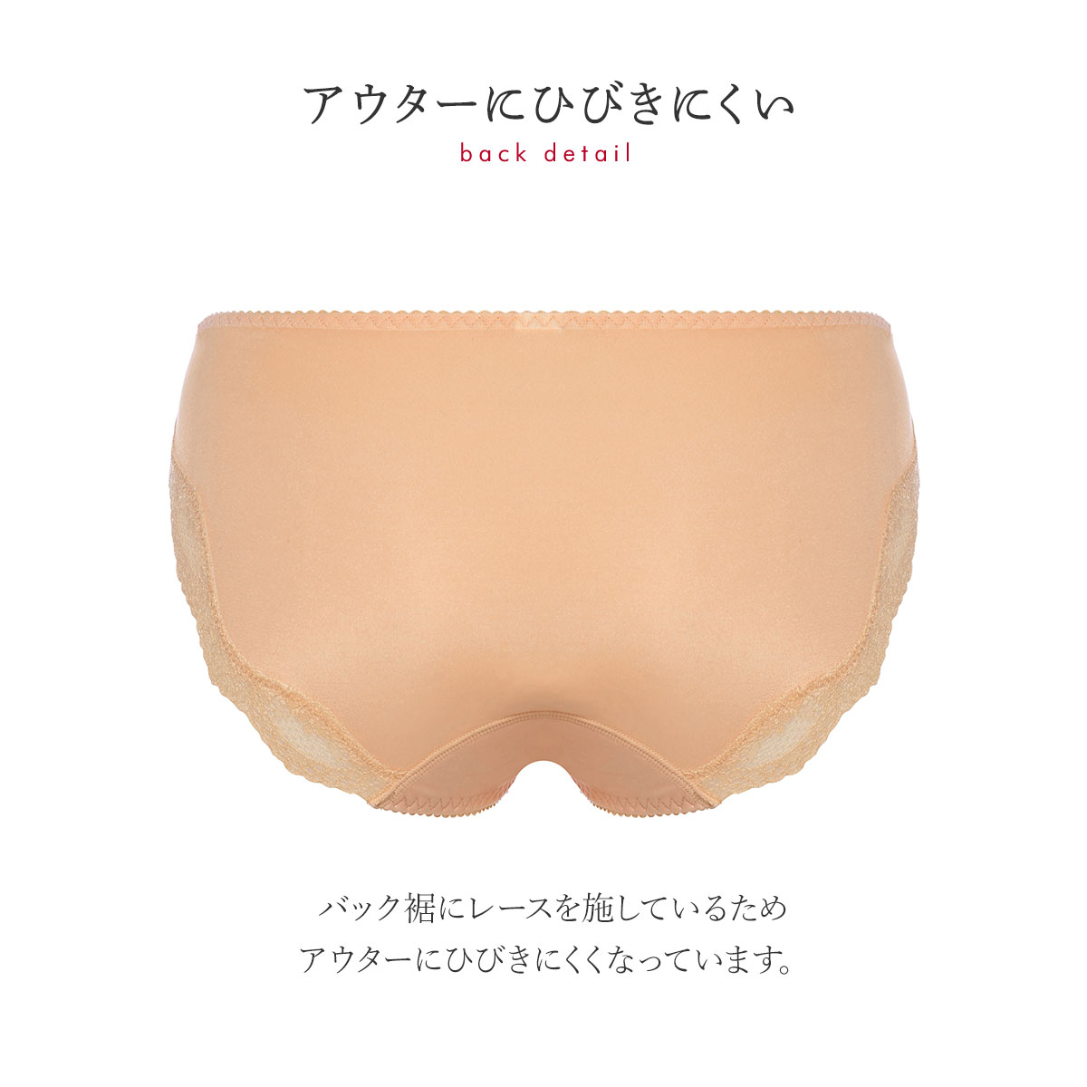 バック裾にレースを施しているためアウターにひびきにくくなっています。