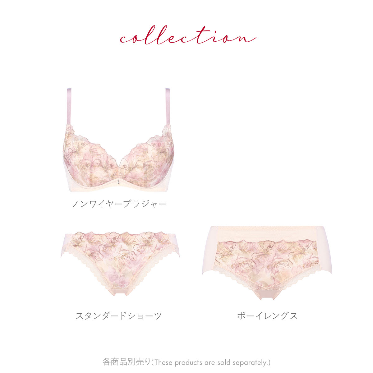 刺繍で描かれたマグノリアの花の影が美しく印象的な、天使のブラ魔法のハリ感TR580シリーズ。影をテーマに、X線で投影されたマグノリアの花の影を、鮮やかな水彩プリントとデリケートな刺繍のラインで表現しています。