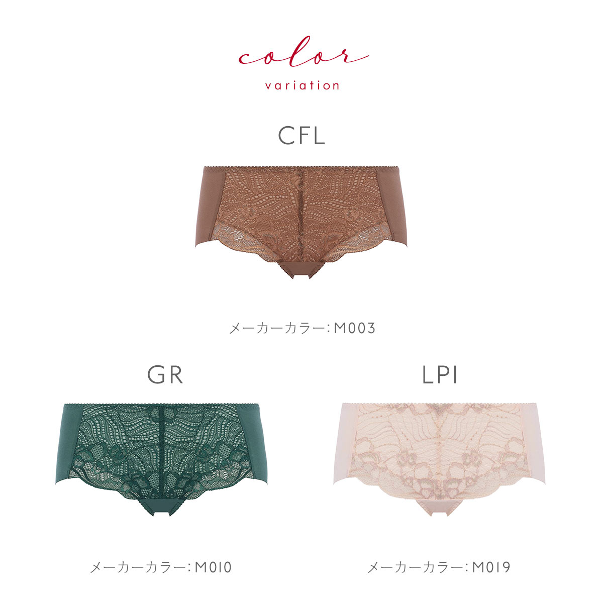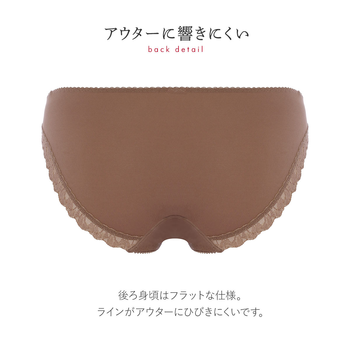 前脚口はレース仕様なのでくいこみにくくなっています。ローライズのボトムにも対応できるヒップハンガータイプです。