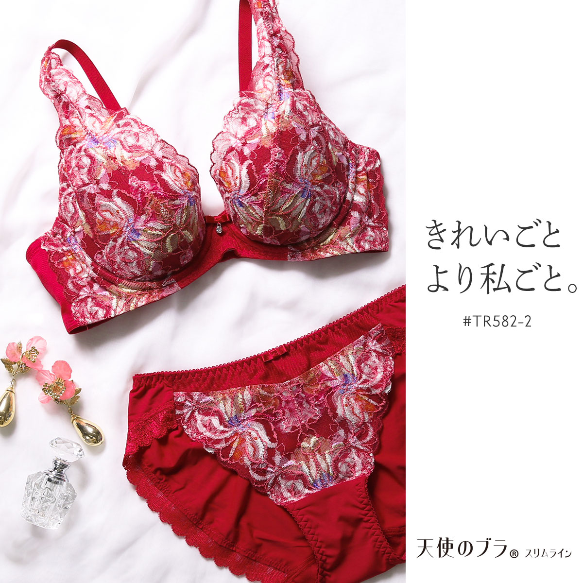 天使のブラスリムラインTR582シリーズは、繊細なレースが官能性を感じさせ、華やかなレーシィプリントでホリデーシーズンを彩るゴージャスな仕上がりです。
