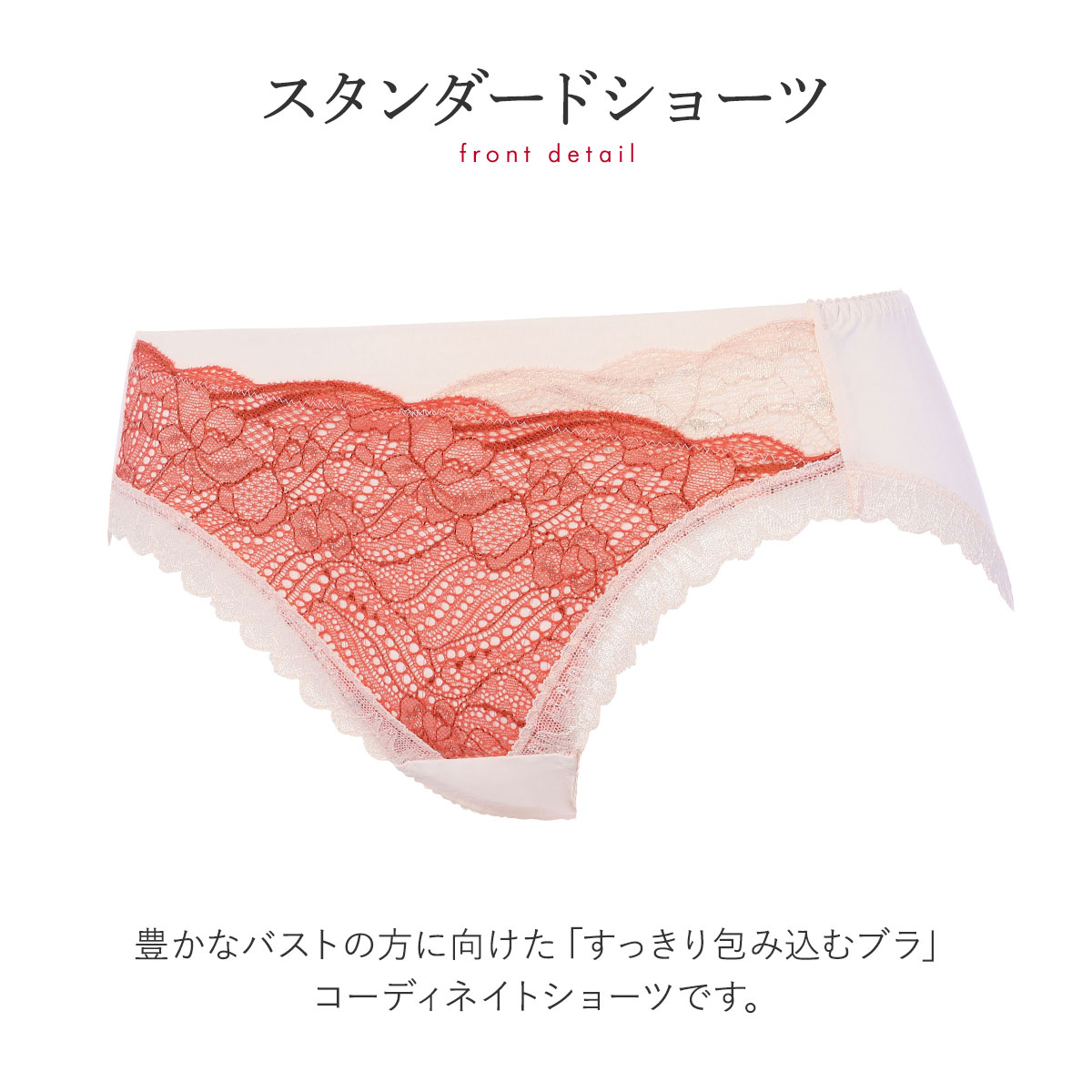 豊かなバストの方に向けた「すっきり包み込むブラ」コーディネイトショーツです。