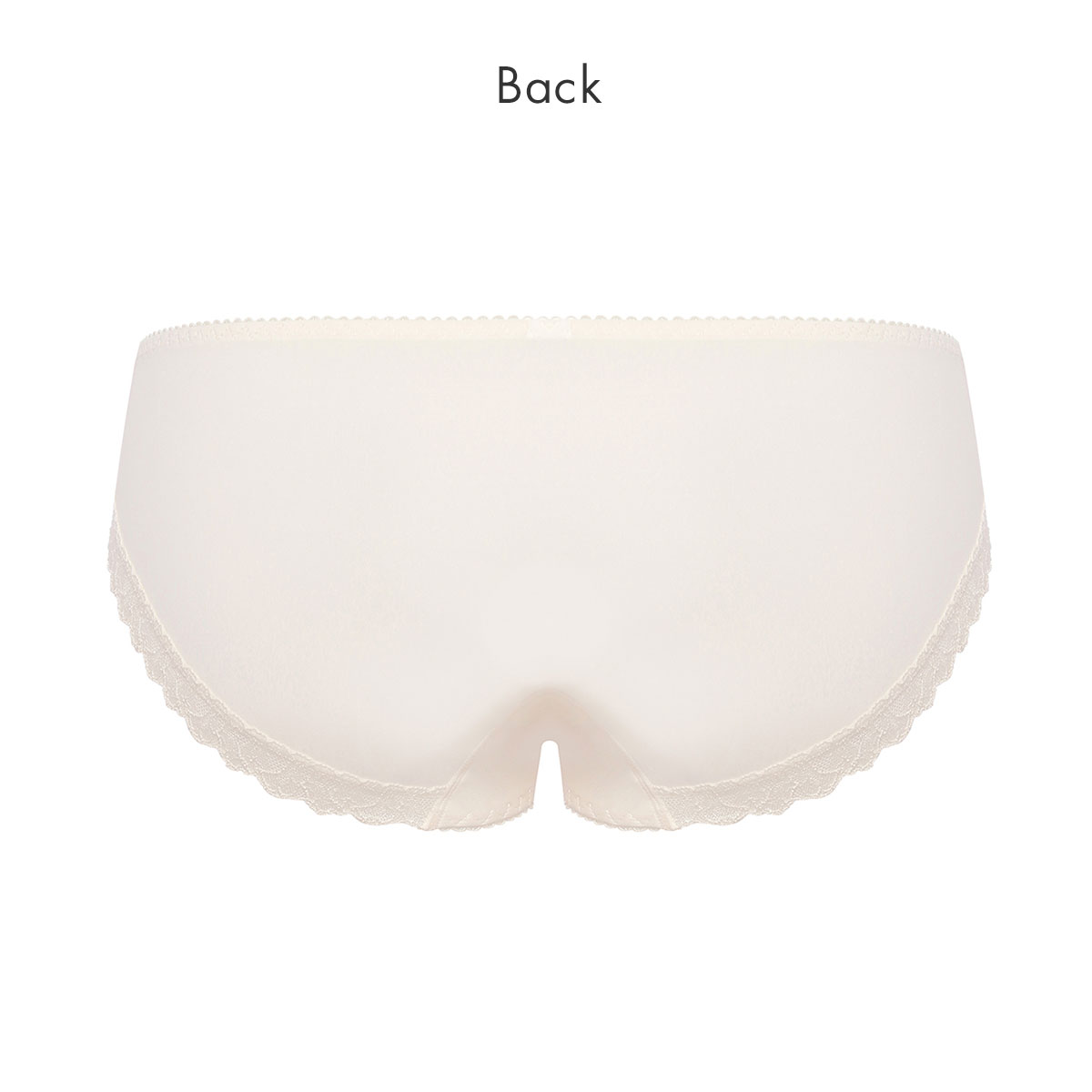 後ろ脚口はレース仕様で、アウターにひびきにくいです。前脚口はメッシュ生地折り返し仕様で、くいこみにくいです。