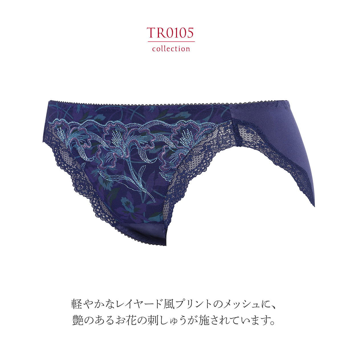 レッドレーベル バイ トリンプTR0105シリーズは、「世界の四大洋ラン」のひとつでもある、豪華な姿のデンドロビュームがインスピレーションの、アールヌーボーの曲線を使って表現されたデザインです。テーマに合わせたプリントのメッシュに、艶のあるお花の刺しゅうが施されています。