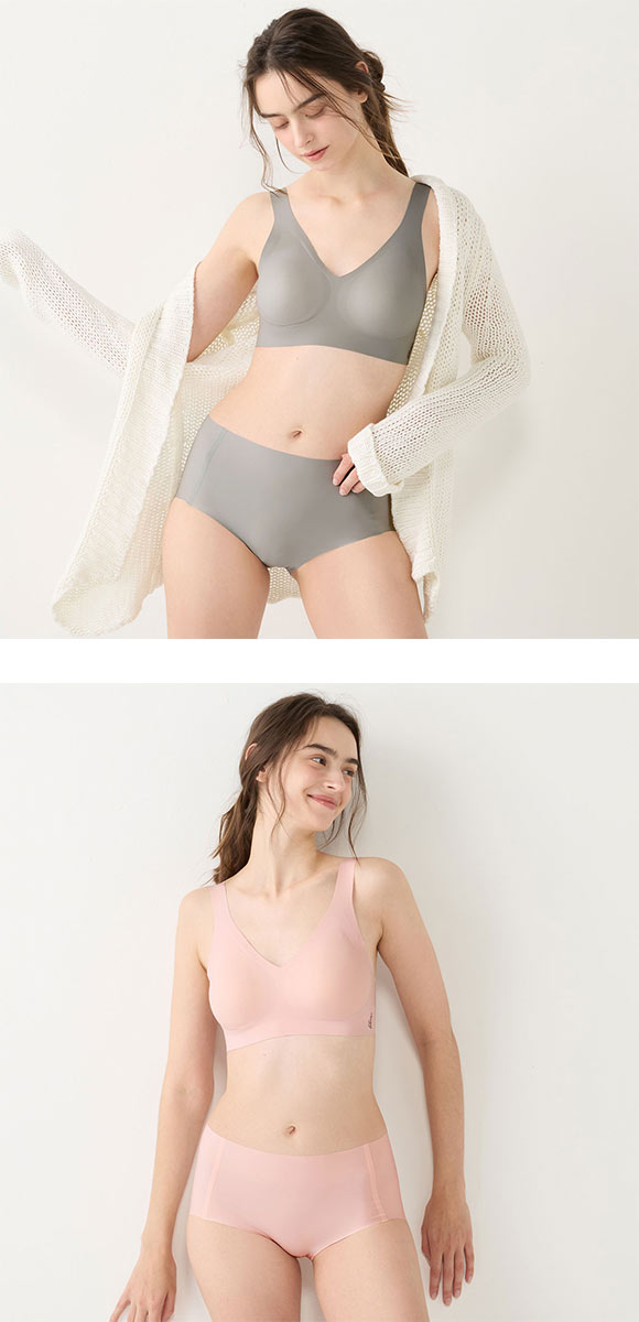 接着技術を使用した無縫製のショーツ。生地端が切りっぱなしで、マチシームもないのでパンツスタイルにぴったりです。