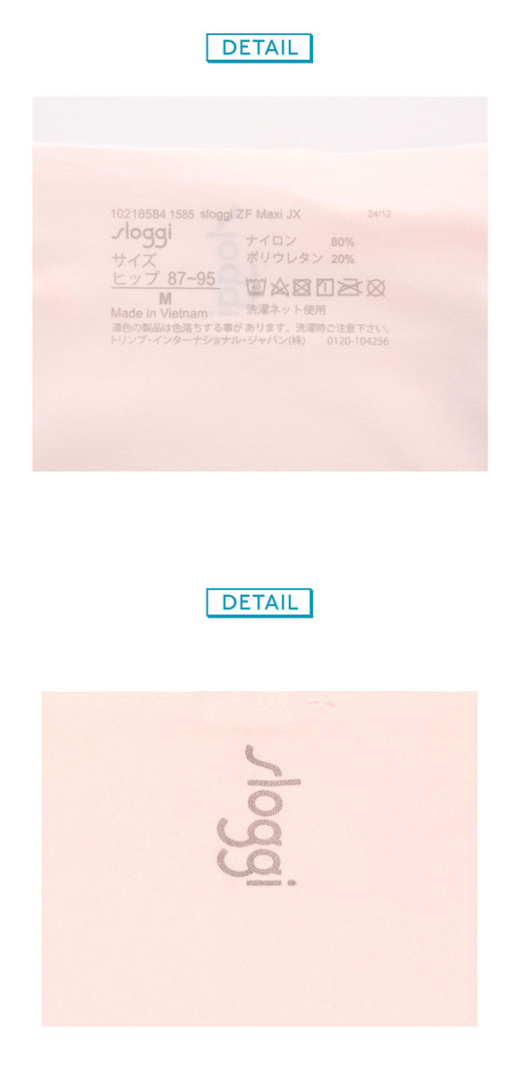 sloggiロゴは後ろ身生地に縦向きに付いてスタイリッシュ。インナーラベルは裏地にプリントタイプです。