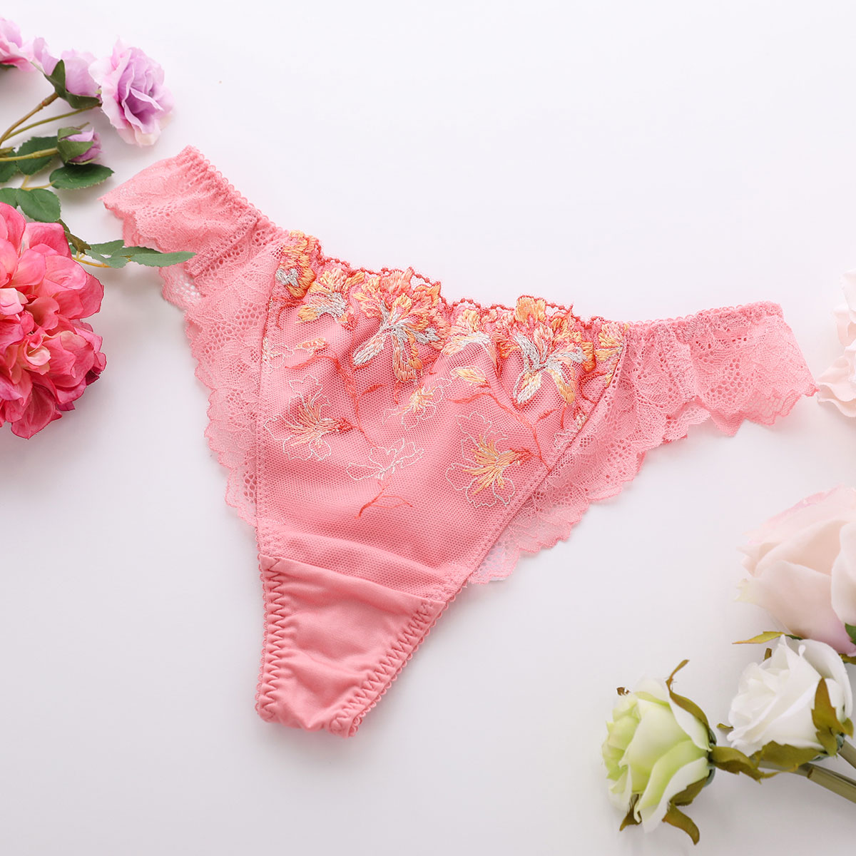 Tバック ショーツ タンガ 豪華 レース 刺繍 花 アップリケ 可愛い バックレース モンシェルピジョン TIAM M L LL Mon cher pigeon