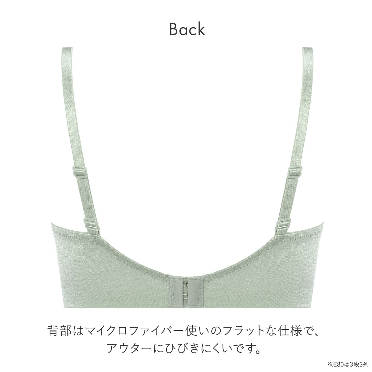 | 仕 様 | ・ホックの数:2段3列:Dカップ、E65-75 3段3列:E80 ・パッド取外し:可能 ・肩紐取外し:不可 ・ノンワイヤー ・カップ内蔵ボーン:なし ・脇サイドボーン:なし |