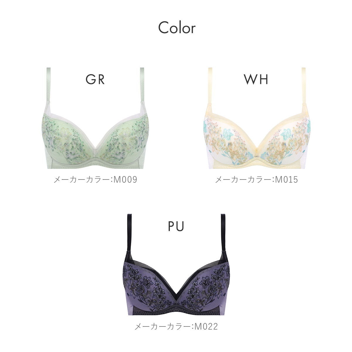 | カラー | GR-グリーン、WH-ホワイト、PU-パープル |