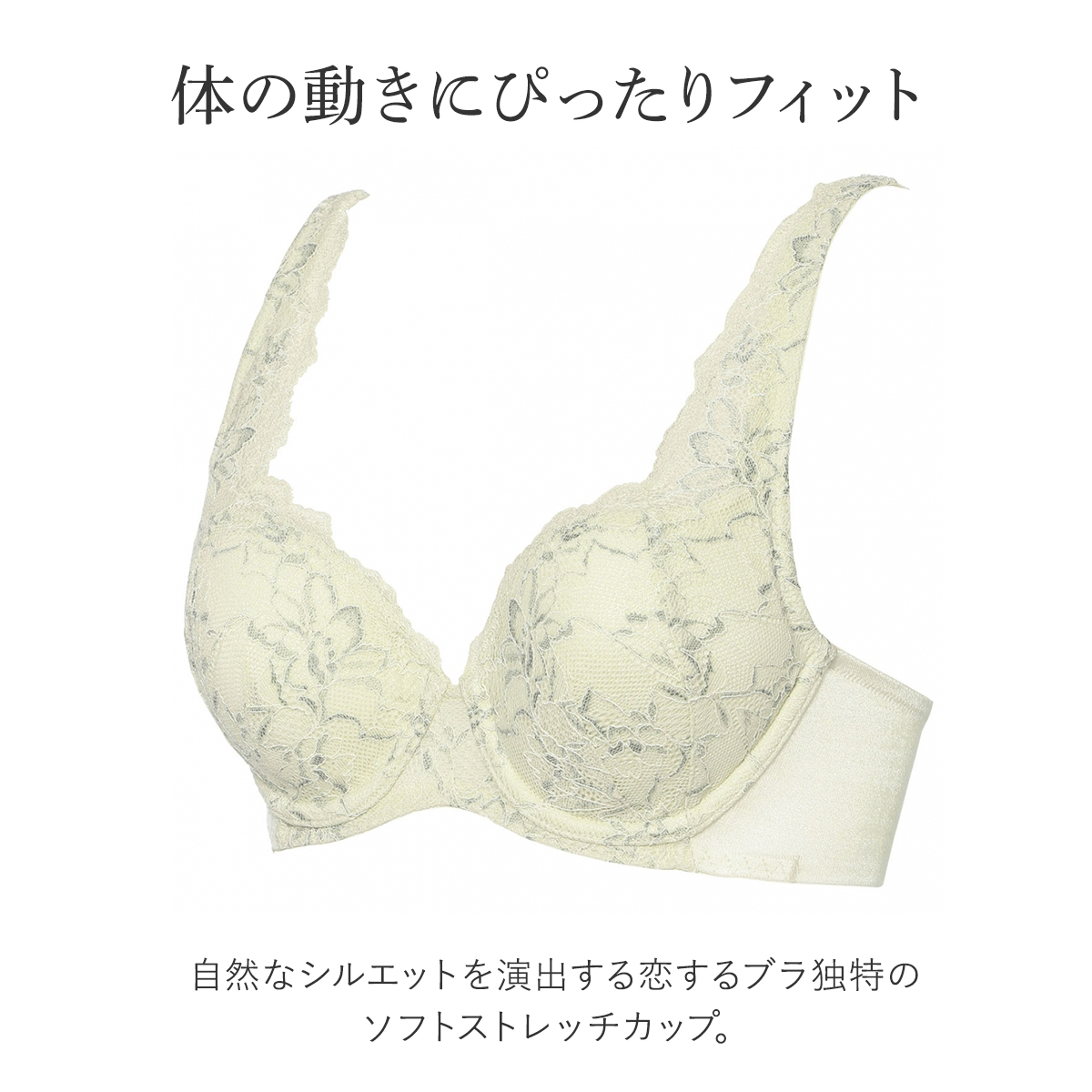 恋するブラTR612恋するブラTR612は風にそよぐリンドウの花や葉っぱをイメージして、穏やかなボタニカル柄をコード糸を使って描いた、線画調のレースを使用した優しい雰囲気。