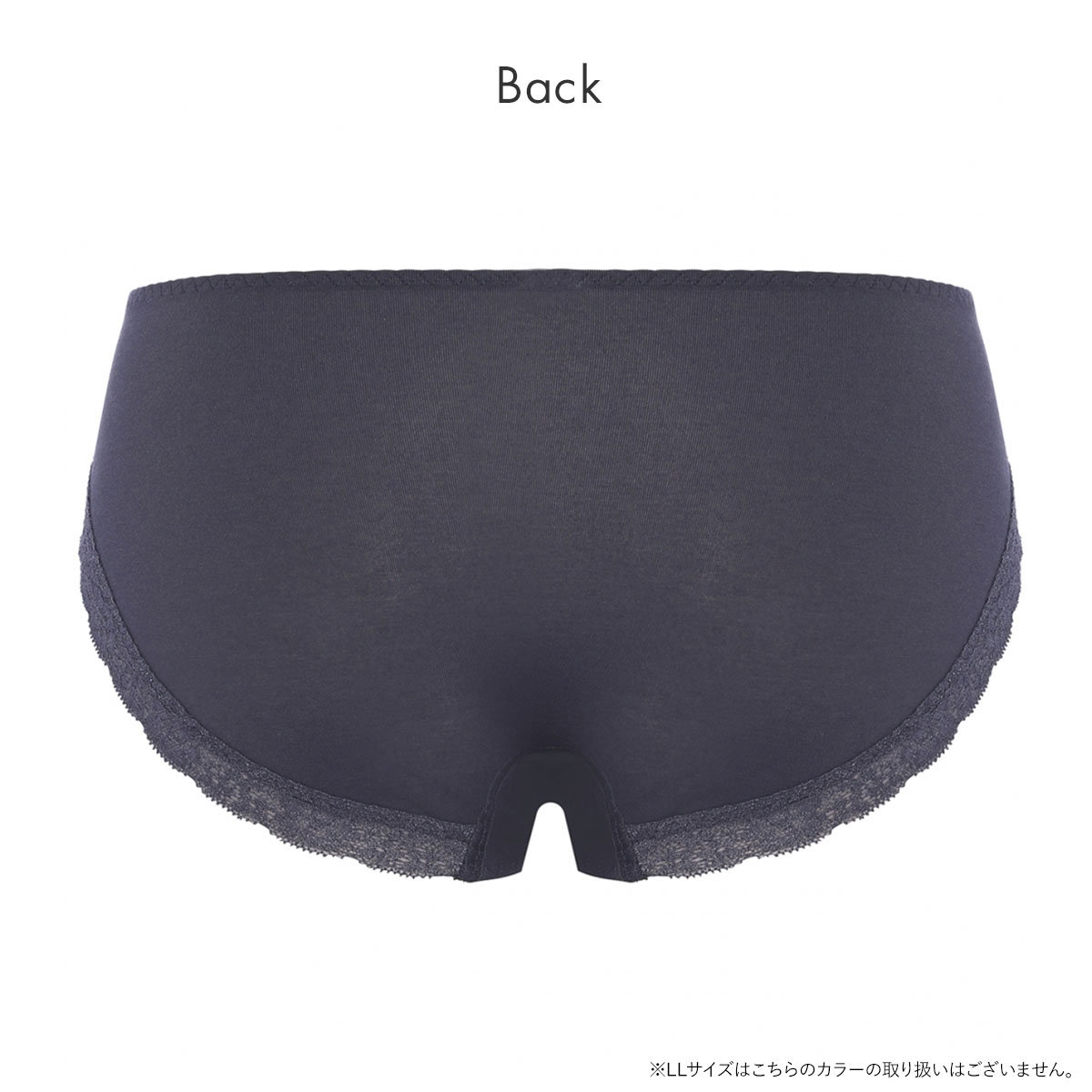 身生地は綿混素材を使用。脚口のレースは裏マイクロファイバー糸づかいで、柔らかな肌ざわりです。前後脚口はレース仕様のため、アウターにひびきにくく、くいこみにくくなっています。