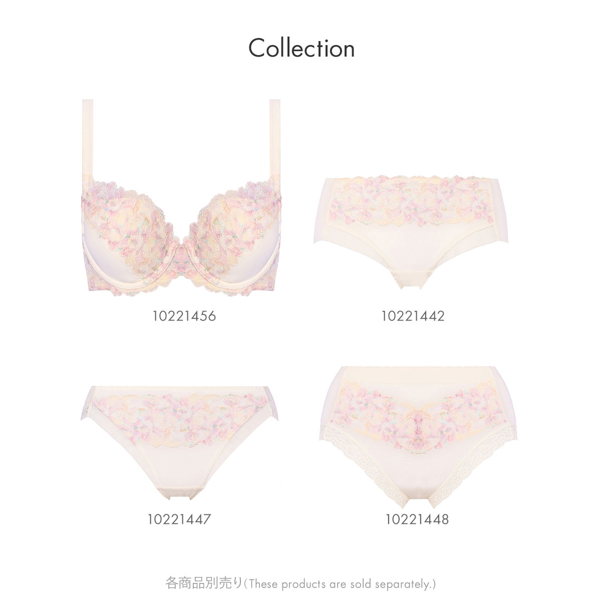 | 仕 様 | ・ホックの数:2段3列:D65-80、Eカップ 3段3列:D85-90 ・3/4カップ ・パッド取外し:可能※D75-90、Eカップはパッド無し(パッドポケット有り) ・肩紐取外し:不可 ・ワイヤー入り ・サイドボーン:あり |