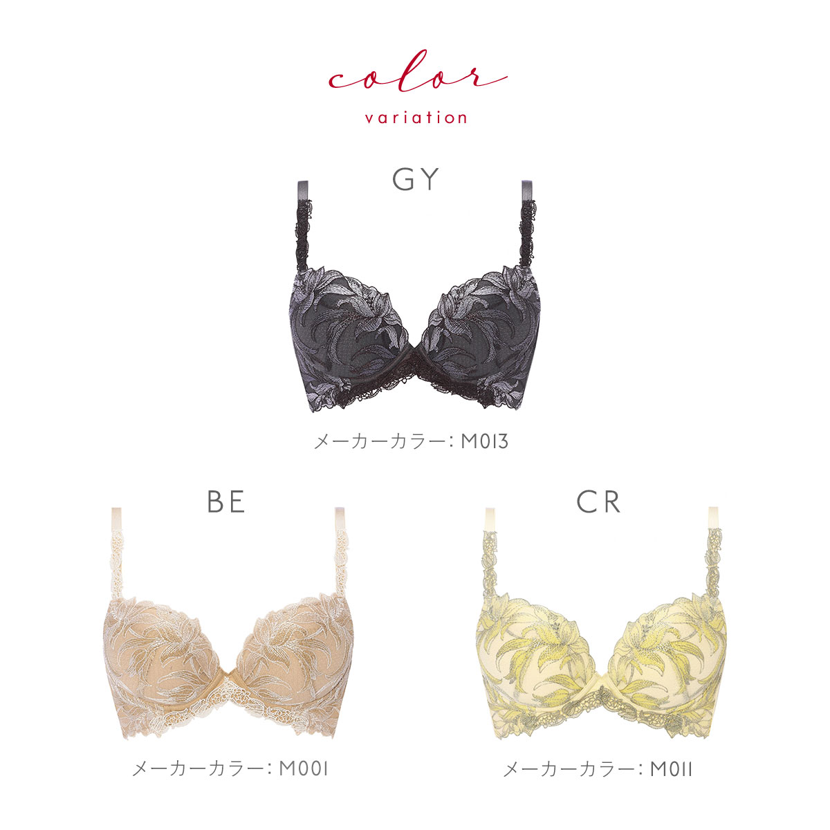 | 仕 様 | ホックの数:2段3列:Bカップ、C65-75 3段3列:C80-85 ・3/4カップ ・パッド取外し:可能 ・肩紐取外し:不可 ・ワイヤー入り ・脇サイドボーン:あり |