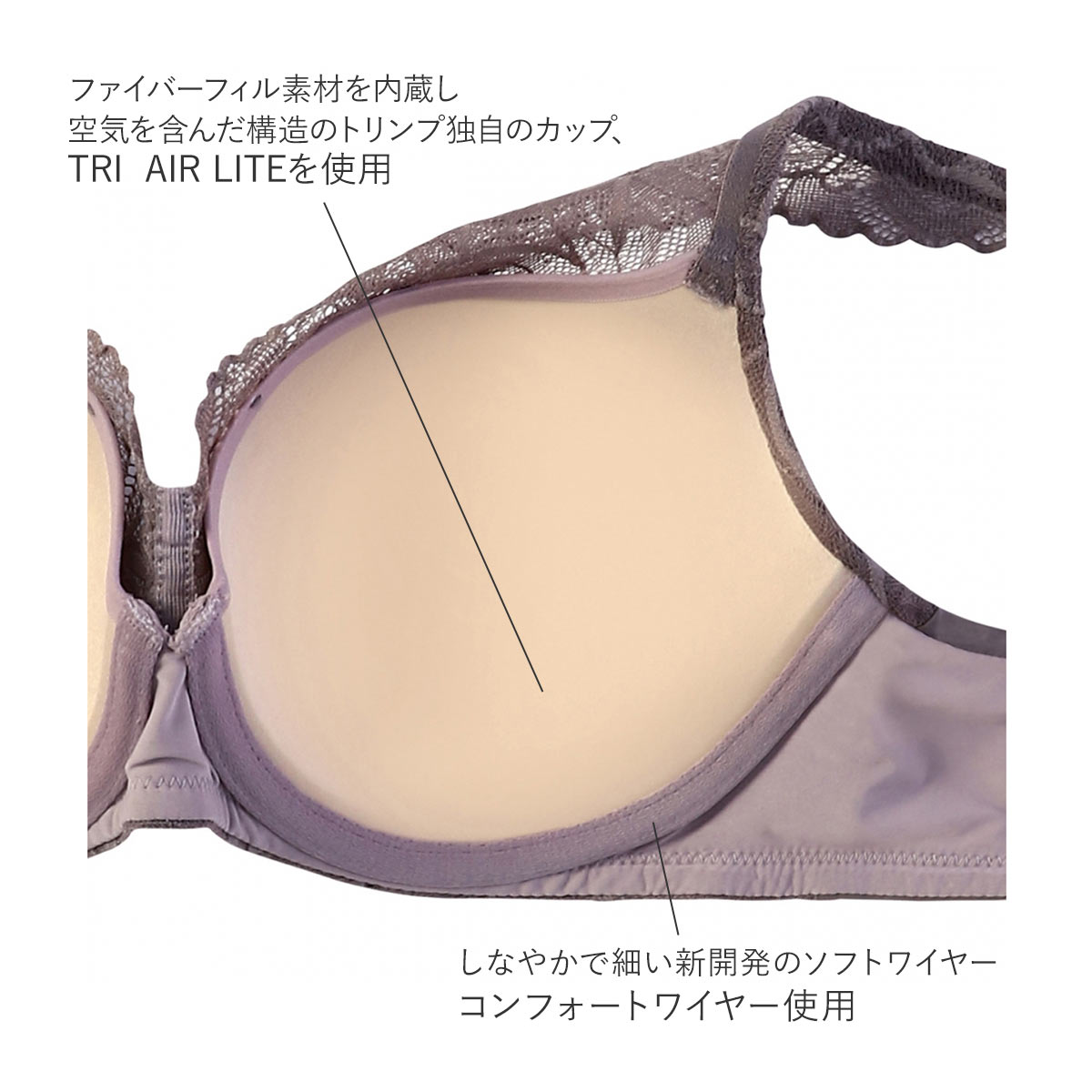 トリンプコンフォートワイヤーブラTR624シリーズは、体の動きにぴったりフィットし、自然なシルエットを演出してくれるブラジャーです。カップにはトリンプ独自の素材『TRI AIR LITE』(トリ エアライト)を使用。つけていないような着けごこちで、バストシルエットを整えます。