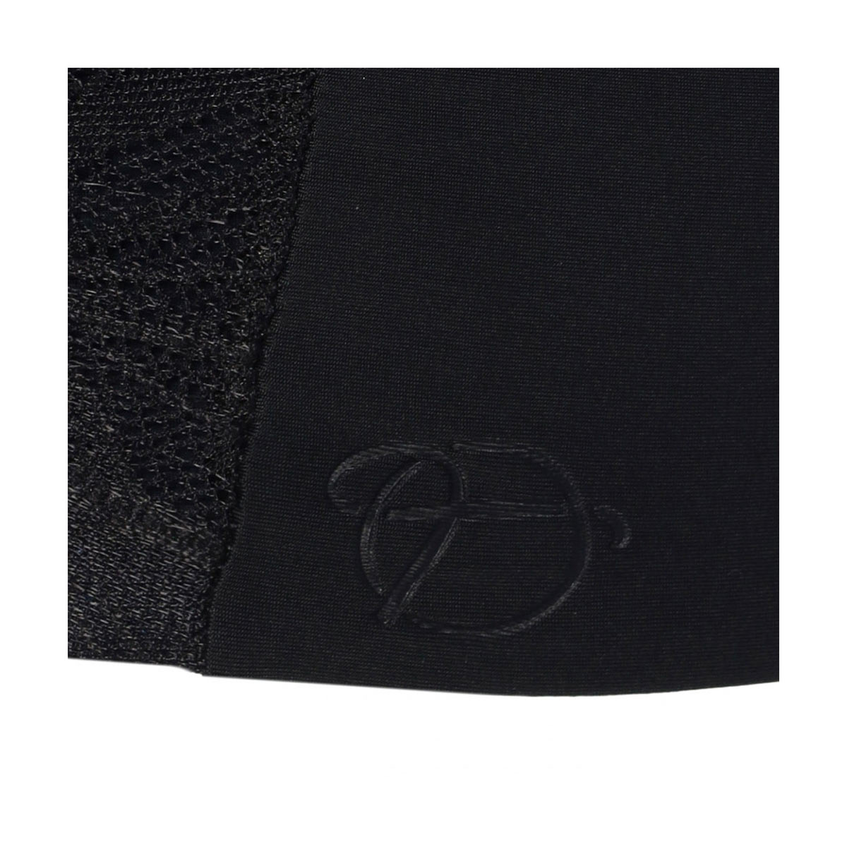 身生地にはなめらかで伸縮性のある吸水速乾性を持つ素材を使用しています。背部は生地の内側にテープを挟みこむ仕様で肌あたりがやさしく、段差がつきにくくなっています。ストラップは肌側が微起毛でやさしい肌あたり。ストラップにアジャスターがついているので長さの調節が可能です。