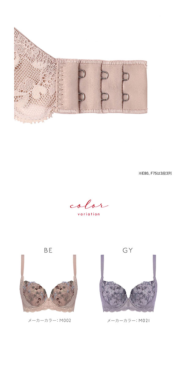 仕 様・ホックの数:2段3列:Dカップ、E65-75、F70