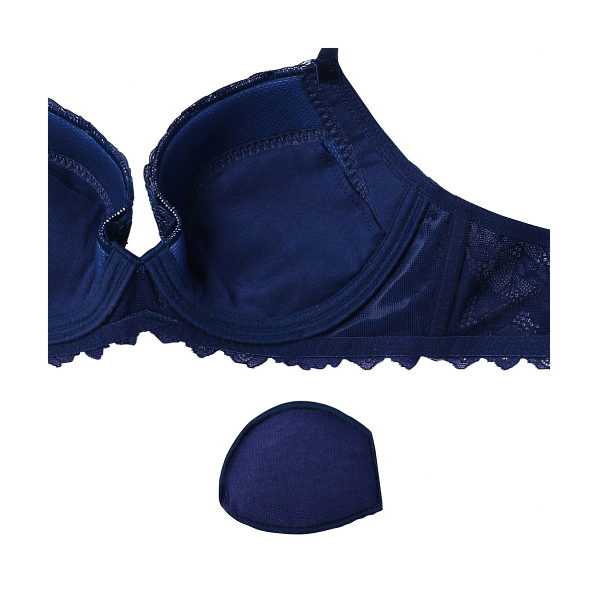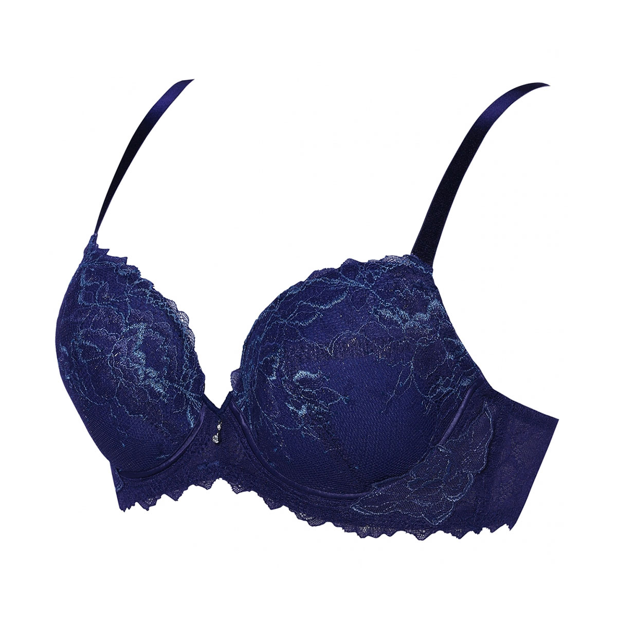 カップ内側の脇部分に伸びない布を配したサイドコンシャス仕様で、すっきりとした脇と美しい谷間を実現します。保形性・耐久性に優れ、ソフトな着けごこちのカップ素材、「エンジェルクッション(R)」ライトを使用しています。取り外し可能なパッド入りでバストをボリュームアップします。ワイヤーを生地の外側に縫い付けるアウトサイドワイヤー仕様で、やさしい肌当たりです。前中心部のワイヤー先端を薄くフラットにし、外側に反らせた「NEWエンジェルワイヤー(R)」を使用。肌にくいこみにくく痛くなりにくくなっています。肩ひものとめ具に三角形の特殊な形をした「デルタマジック(R)」を使用しているので、肩からずれ落ちにくくなっています。