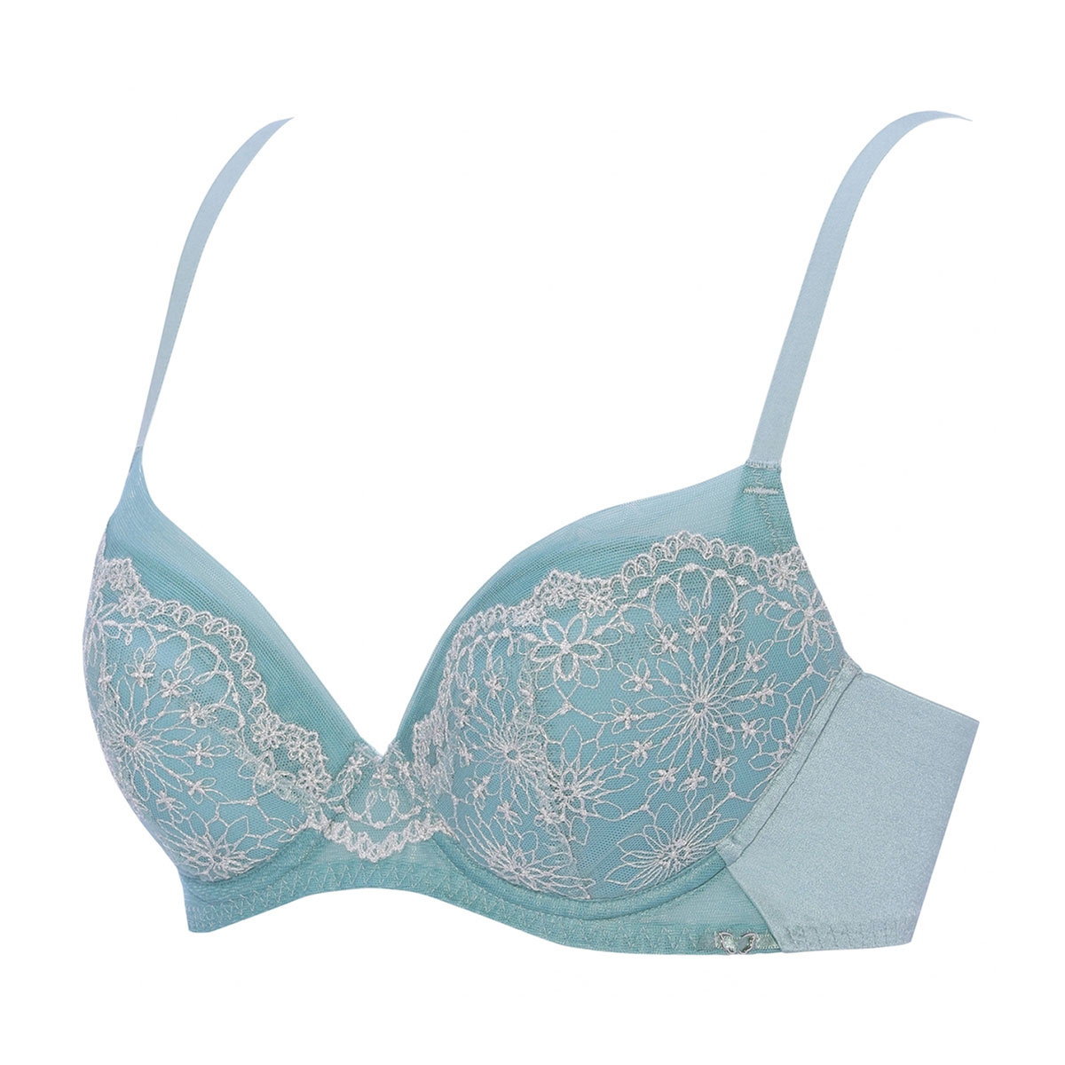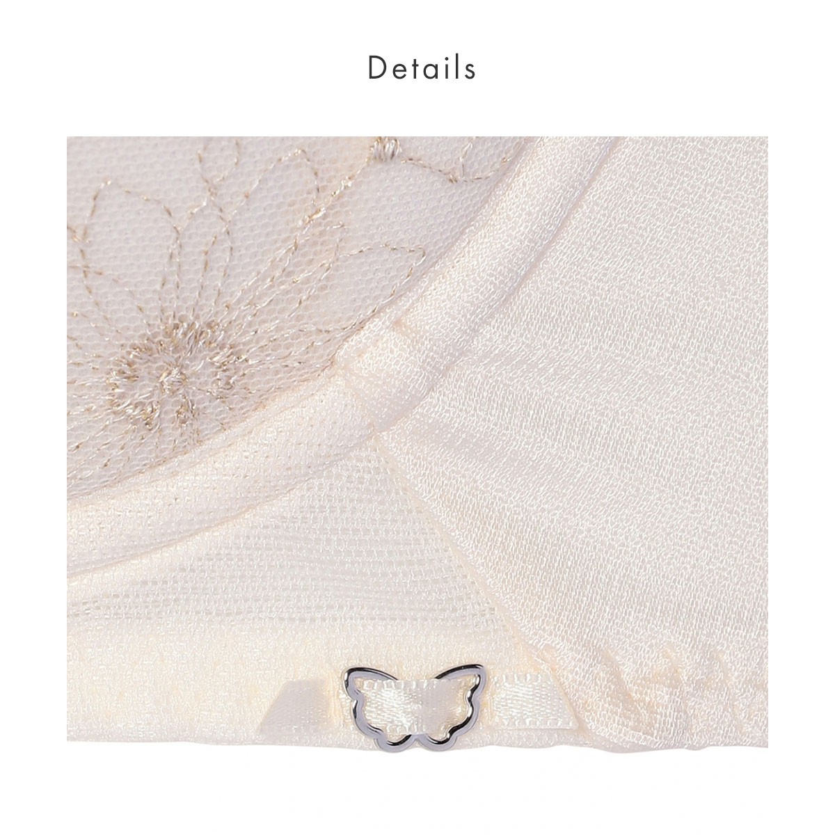 30周年を記念し「軽くてラク」と「自然なバストメイク」を同時に叶える新・天使のブラを提案。レースの古書やパーティードレスから着想したエンブロイダリーレースは、ステンドグラスのような繊細な幾何学模様で、ふんだんに施されたラメ糸がキラキラと輝き、特別感が漂います。