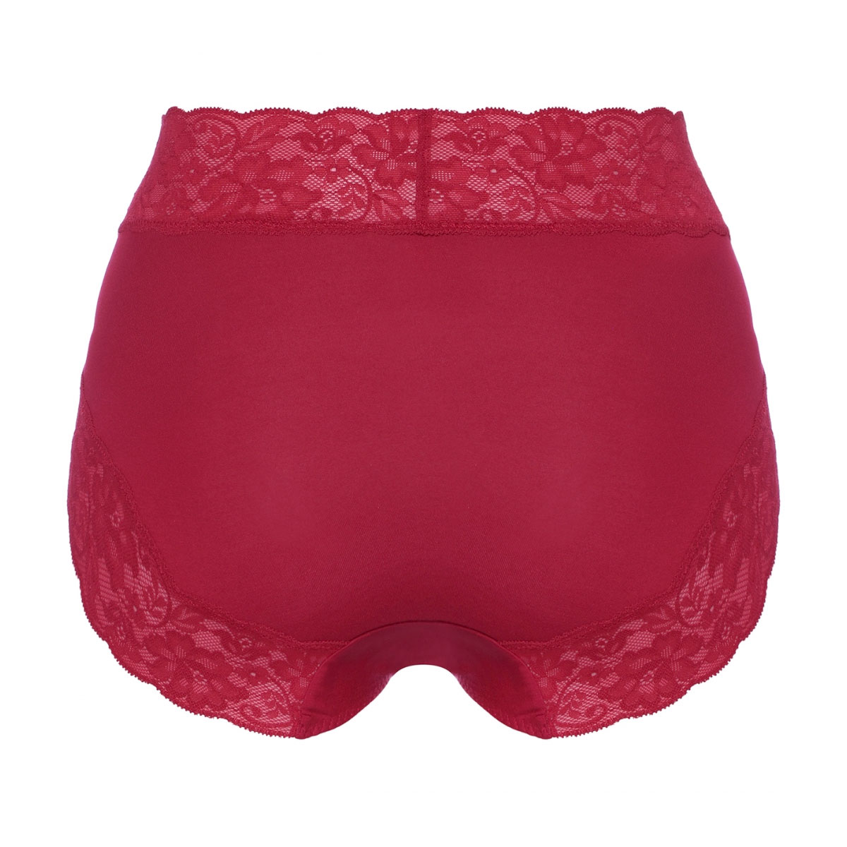 前脚口部分はレースをクロスさせているため、ヒップの丸みにフィットしながらも脚口の締め付けを軽減します。後ろ脚口もレース仕様のため、アウターにひびきにくくなっています。