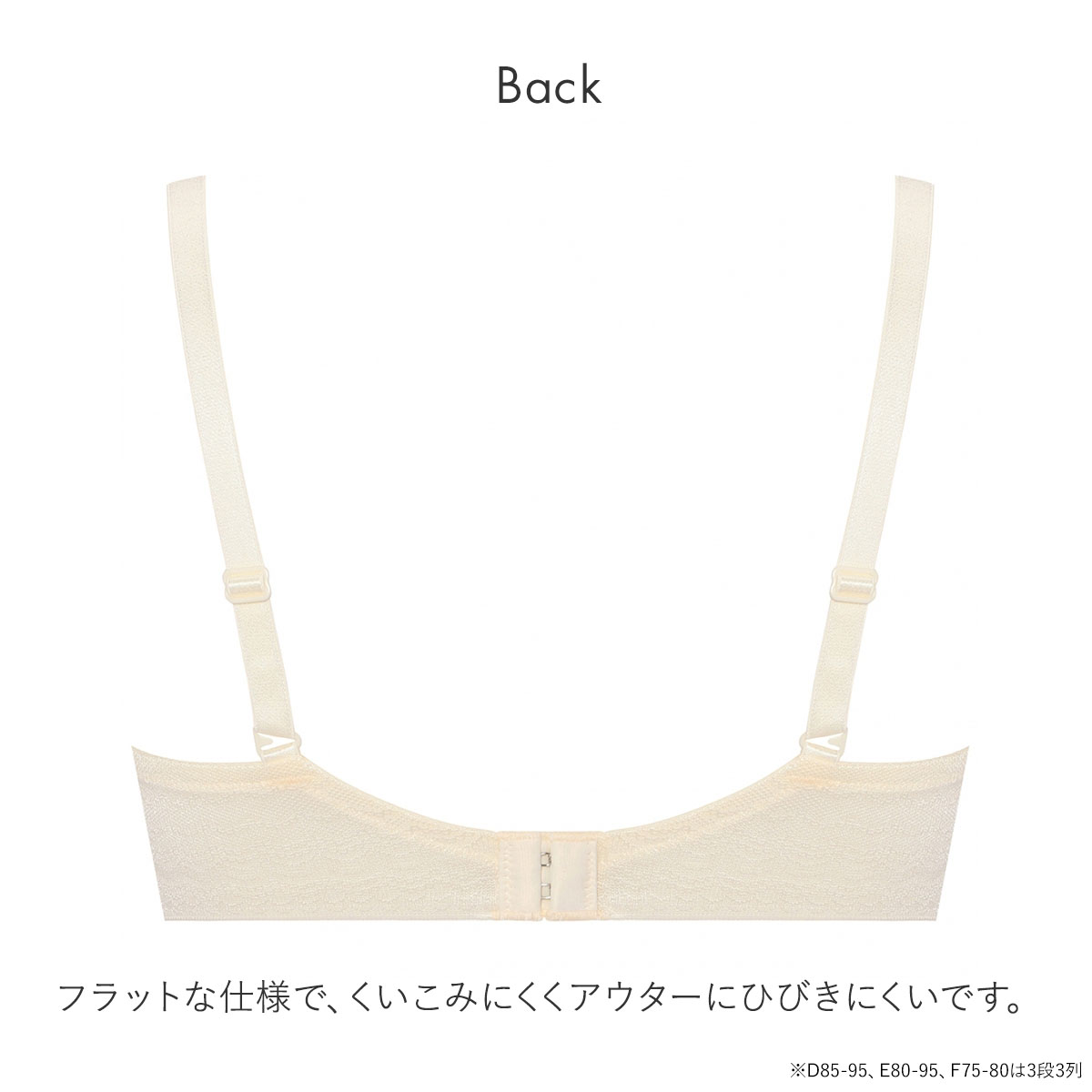 前中心部のワイヤーを薄くフラットにし外側に反らせたNEW「エンジェルワイヤー」を使用。肌にくいこみにくく痛くなりにくくなっています。