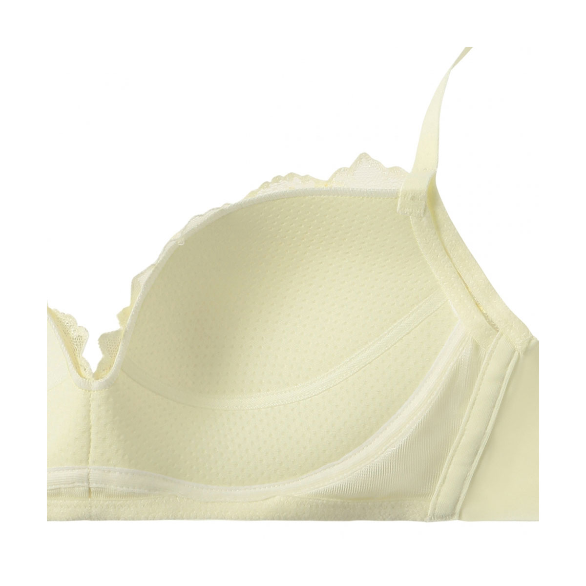保形性・耐久性に優れ、ソフトな着けごこちのカップ素材、「エンジェルクッション」ライトを使用しています。