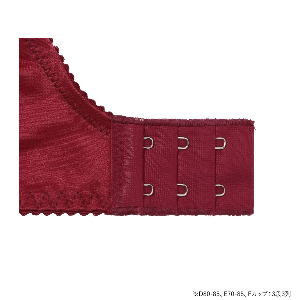 | 仕 様 | ホックの数:2段3列:D65-75、E65 3段3列:D80-85、E70-85、Fカップ ・3/4カップ ・パッド取外し:可能 ・肩紐取外し:不可 ・ワイヤー入り ・脇サイドボーン:あり