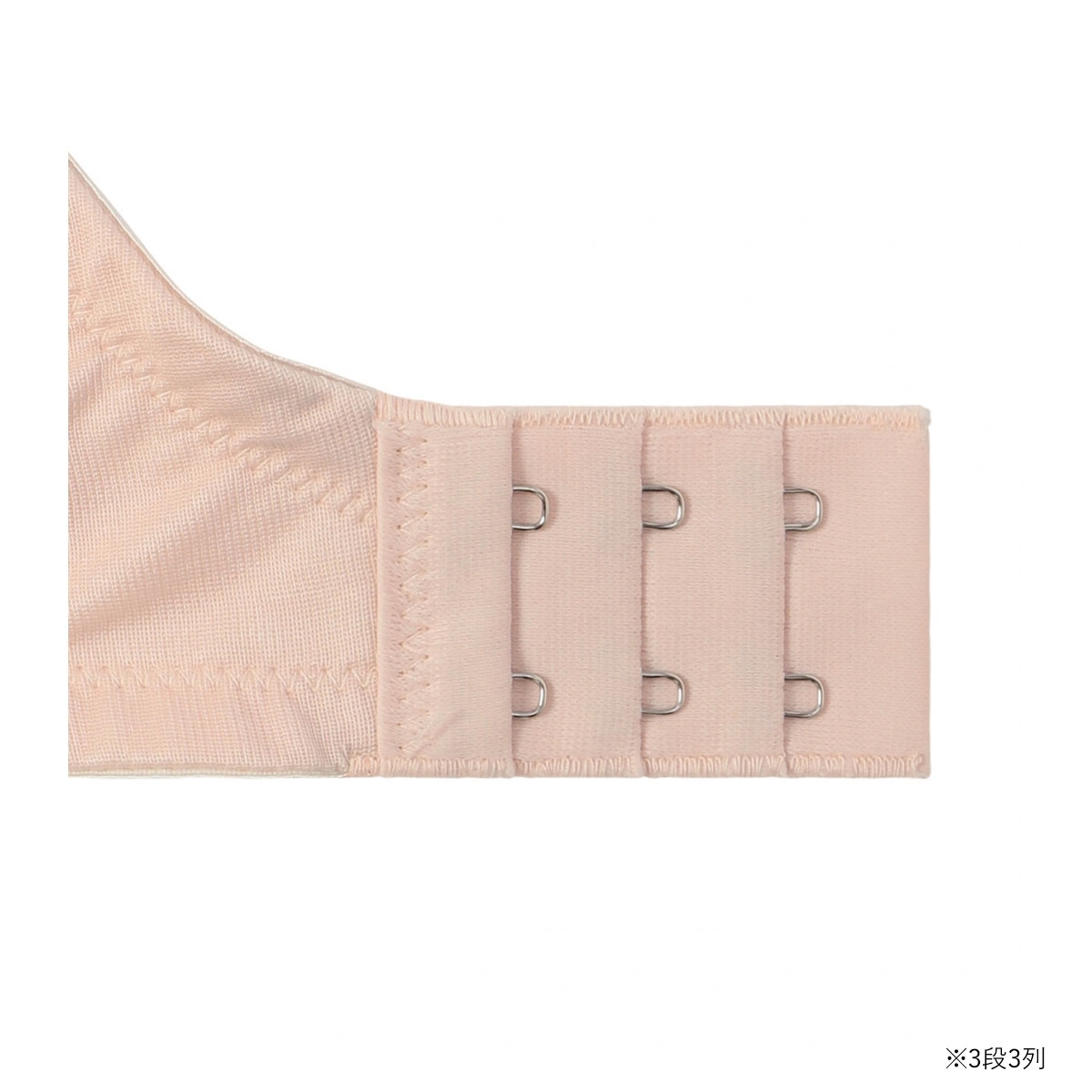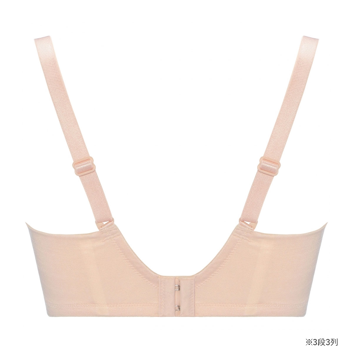 カップサイドから肩ひもにつながるパーツとカップ内側サイドの伸びないパーツで、バストを寄せてすっきりみせます。