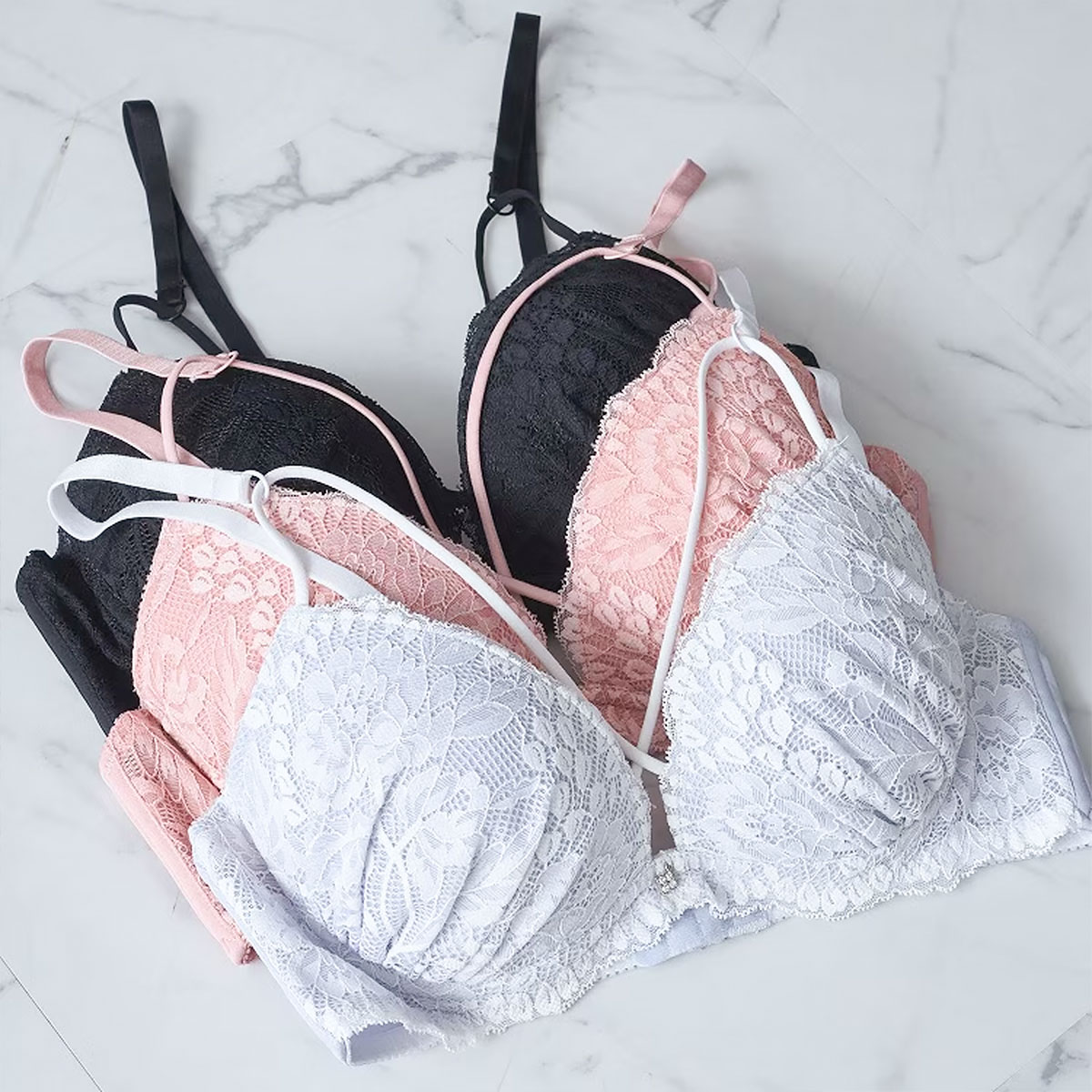 | 仕 様 | ブラ ・ホックの数:2段3列 ・3/4カップ ・下厚内蔵パッドあり、パッドポケットなし ・肩紐取外し:不可 ・L字ワイヤー入り ・サイドボーン:あり