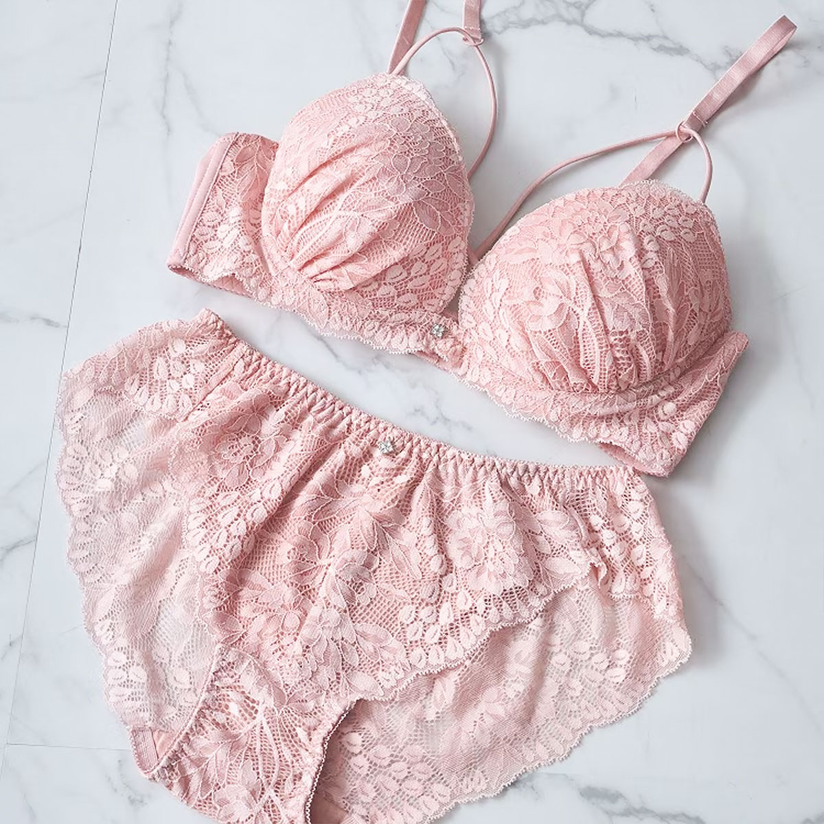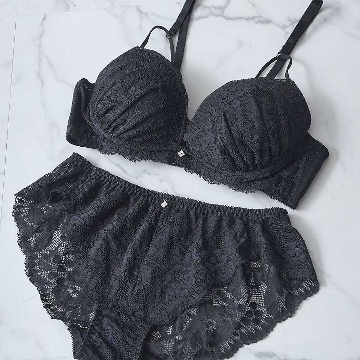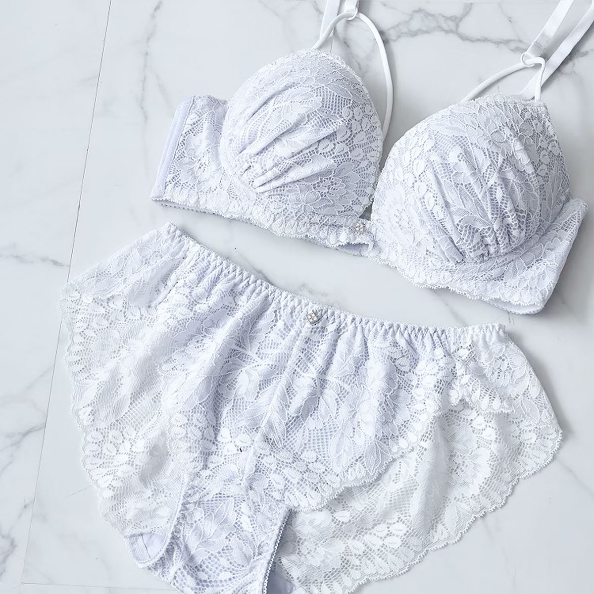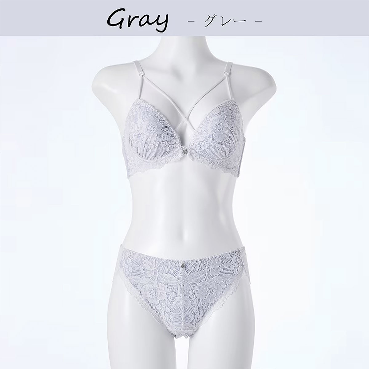 レーシーでシンプルなデザインにセクシーな魅力をプラスしたブラショーツセット。
