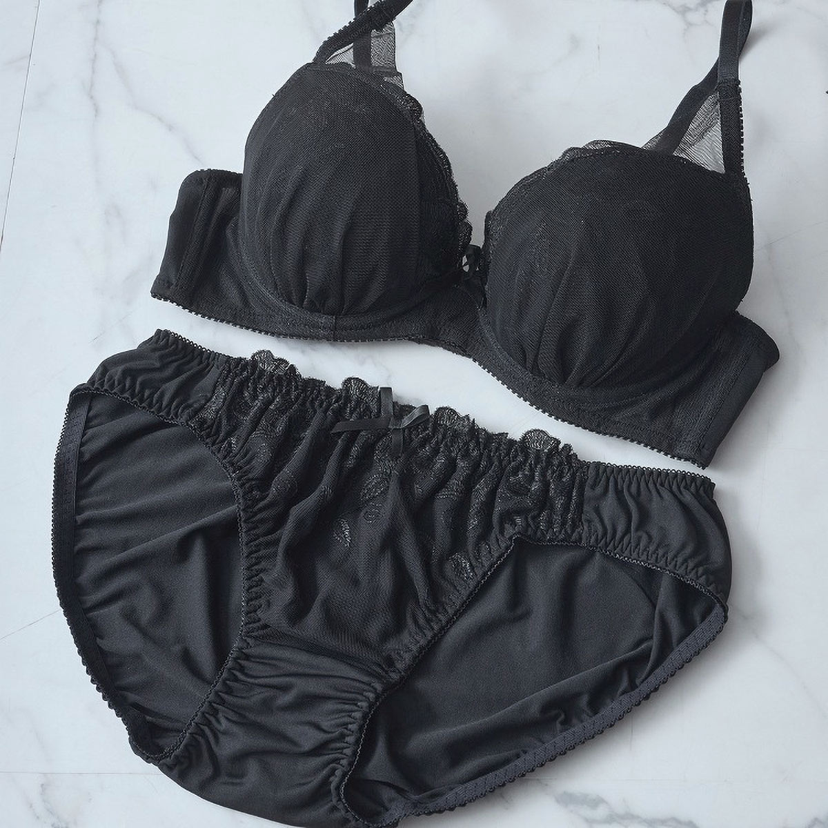 レースチュールのシアー感がフェミニンなプチプラブラセット B-F
