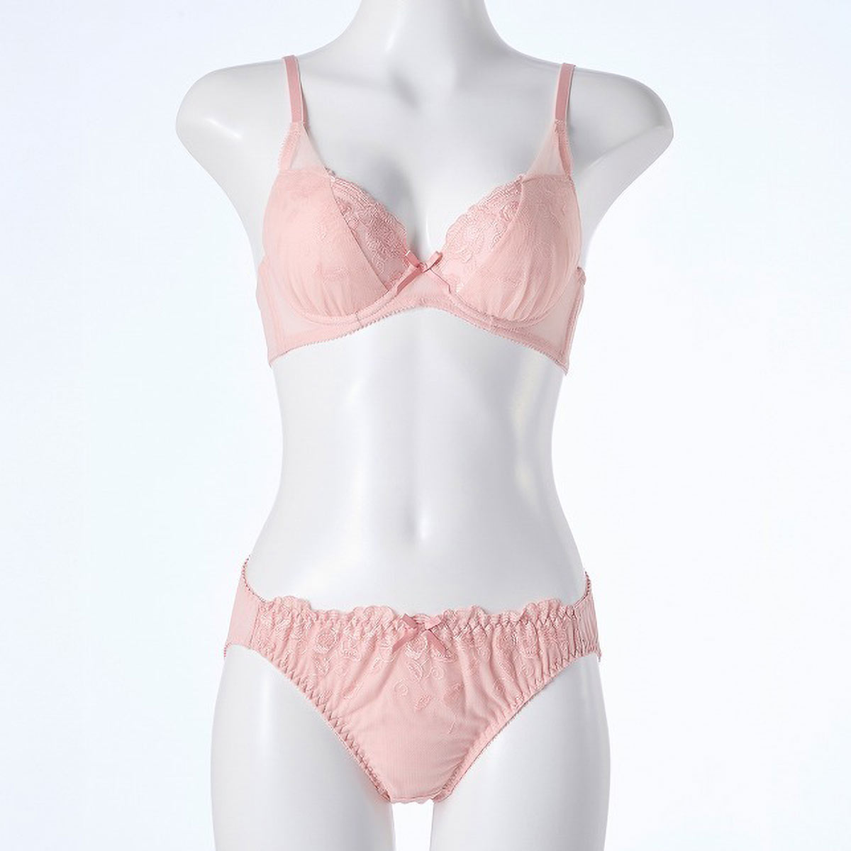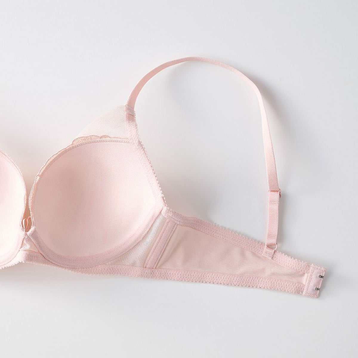 ブラジャーはもっちり下厚のモールドカップで、バストをふっくらボリュームアップ。自然な丸みのあるきれいなバストラインをメイクします。