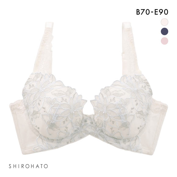 ベストセラーシリーズ★気になる背中をしっかりサポート!キレイ工房のお悩み解決「美背中シルエットブラ」。大ぶりの花柄刺繍をあしらい、上品で美しいデザインです。